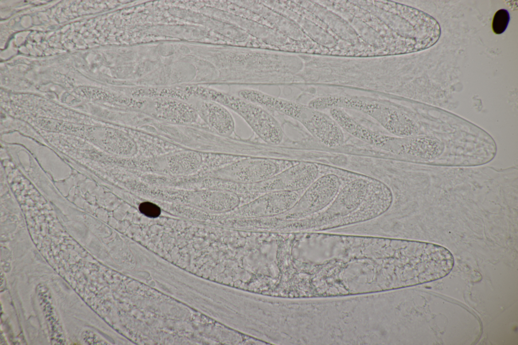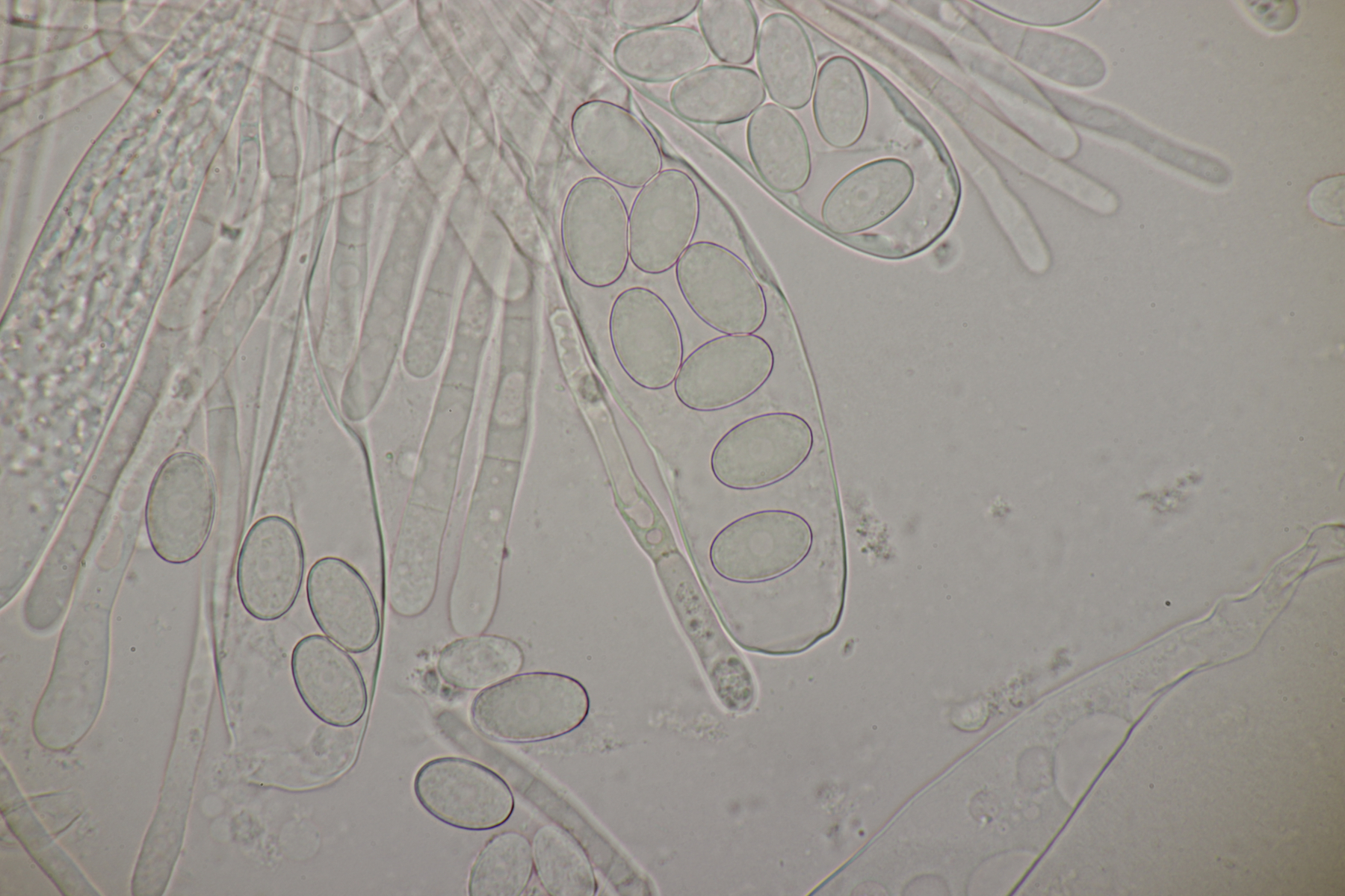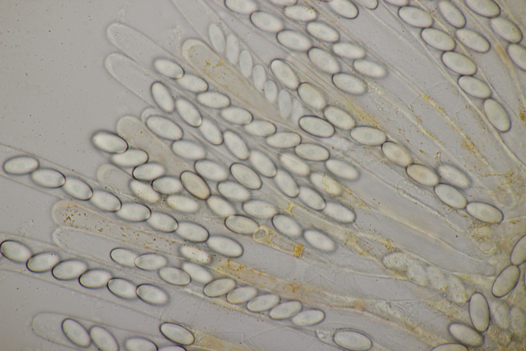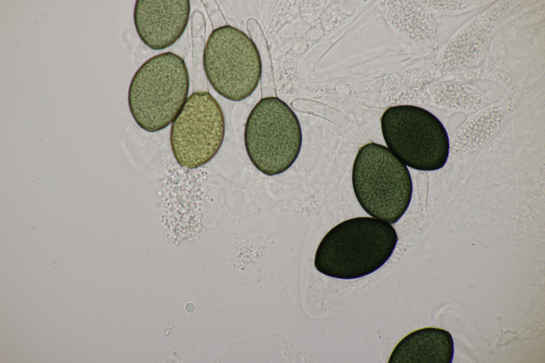 6. Und heute morgen dann ganz frisch eine Sporormiella. Die Sporen messen (51-57) µm x (10-12) µm, die Keimspalten sind parallel, die Asci scheinen unten einen langen, dünnen Stiel zu haben. Insgesamt lande ich da bei Sporormiella grandispora.