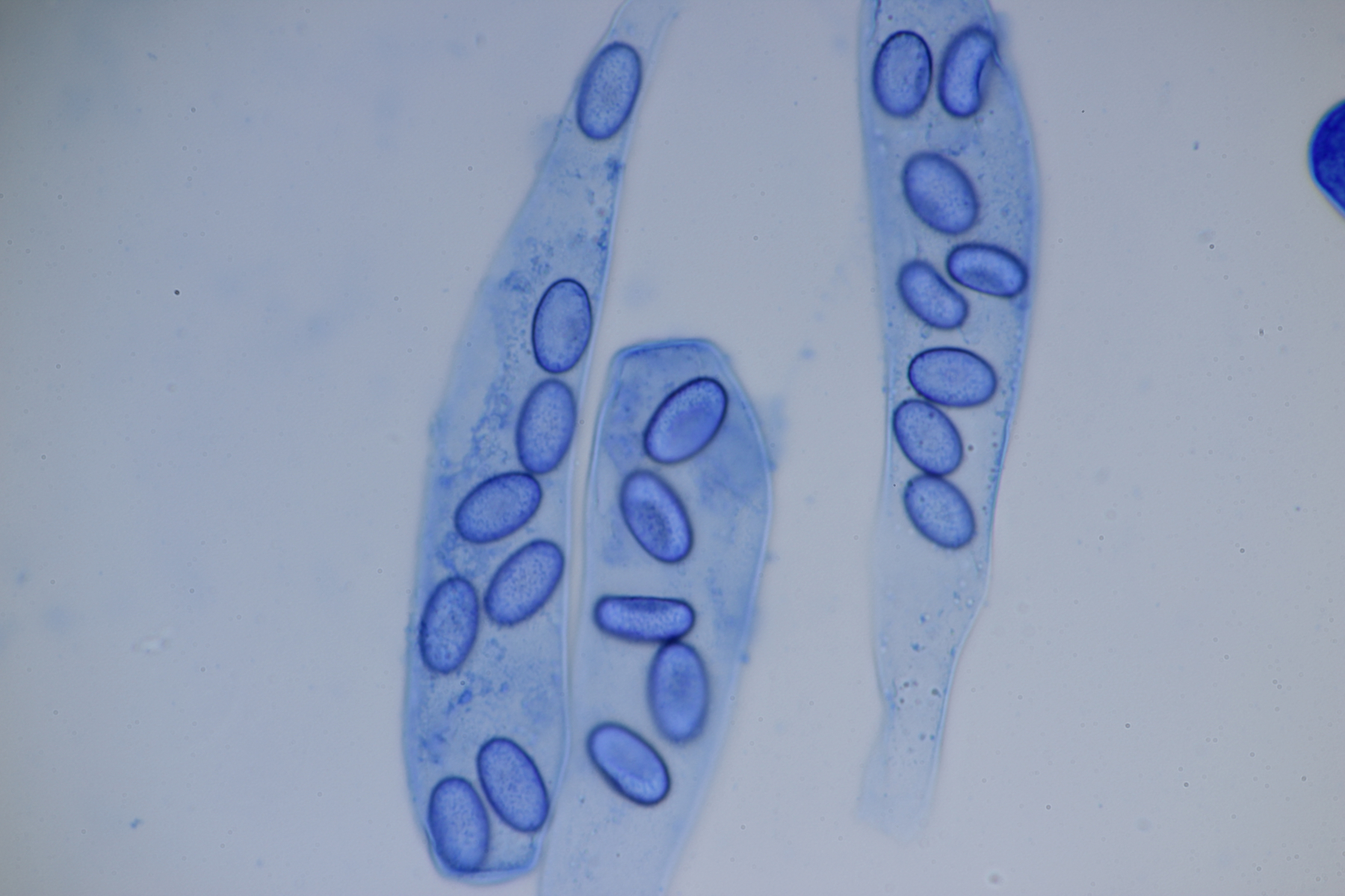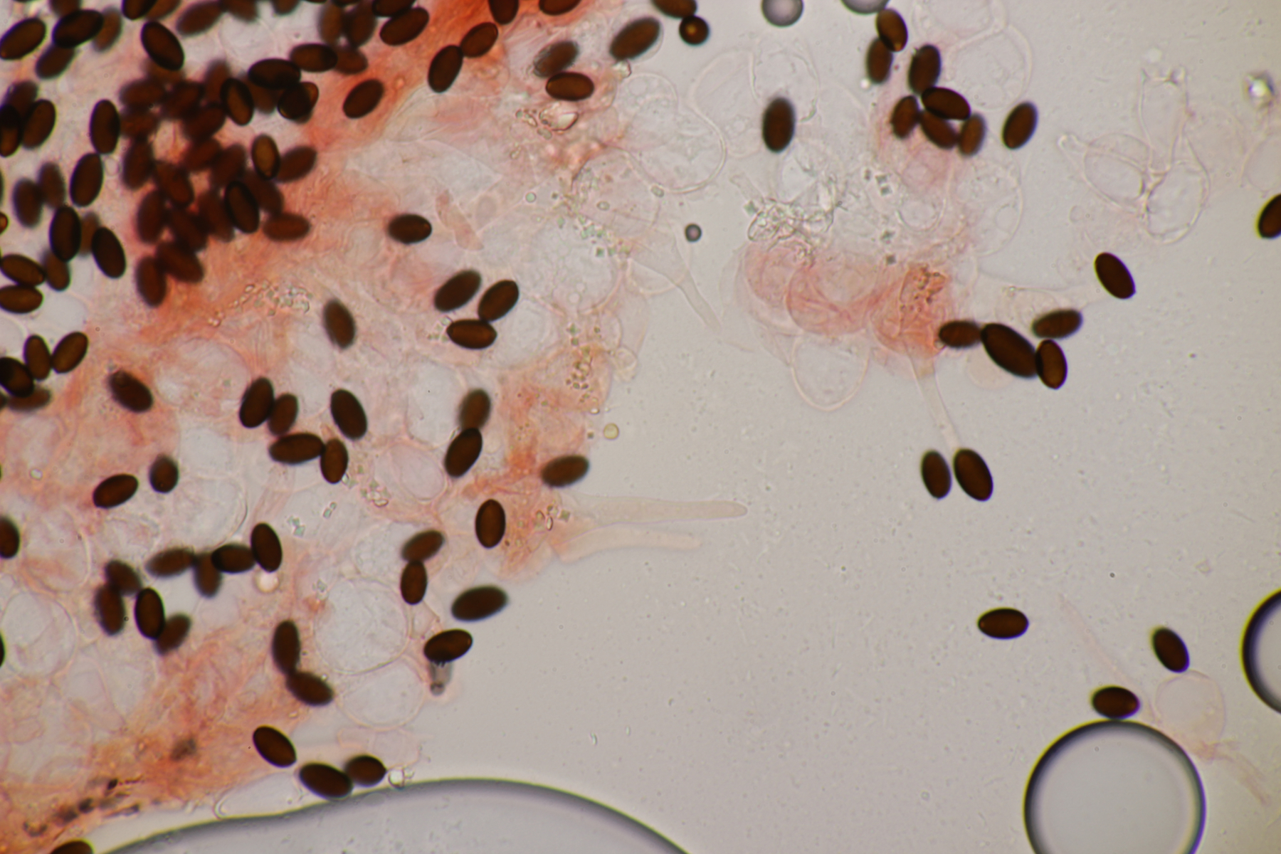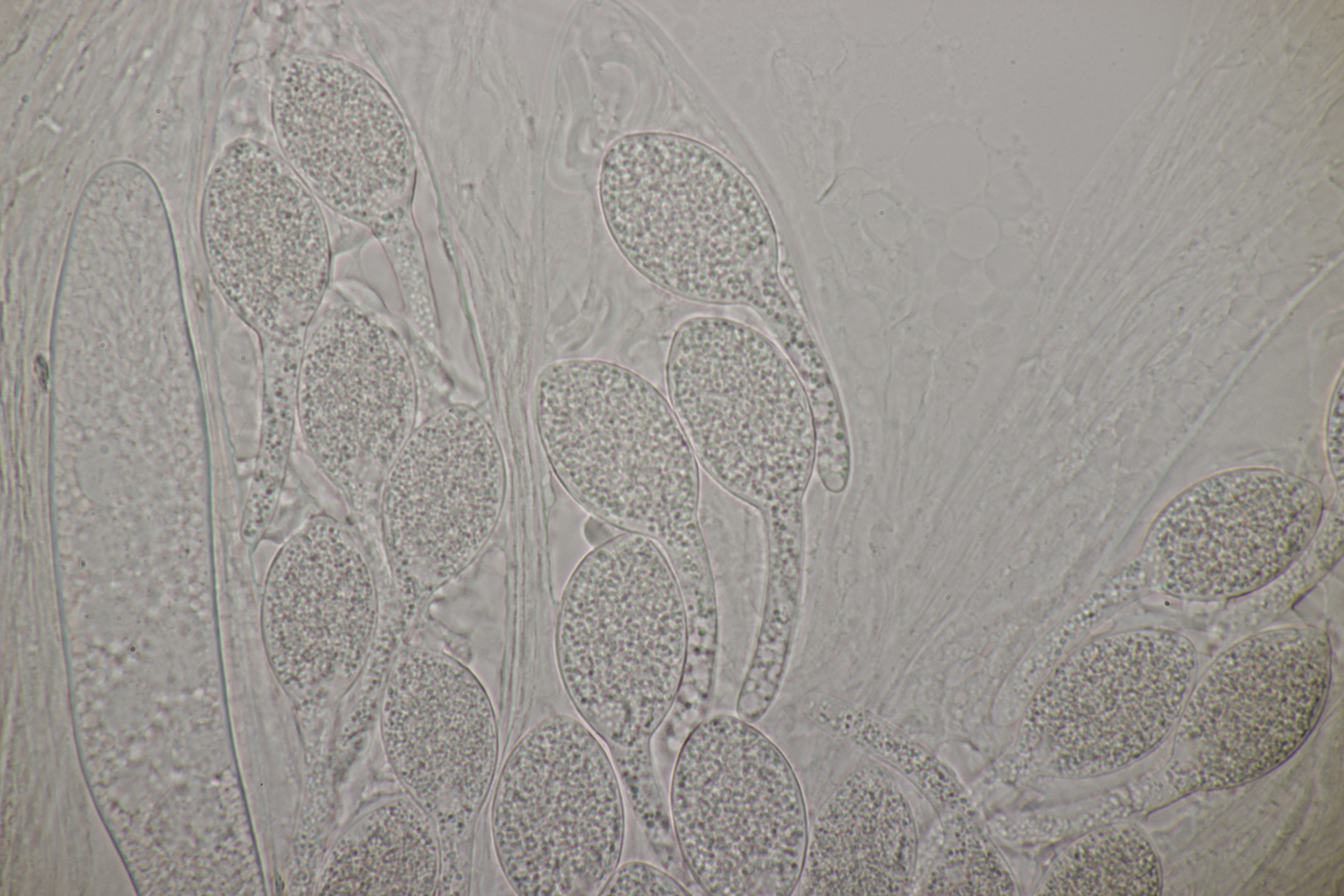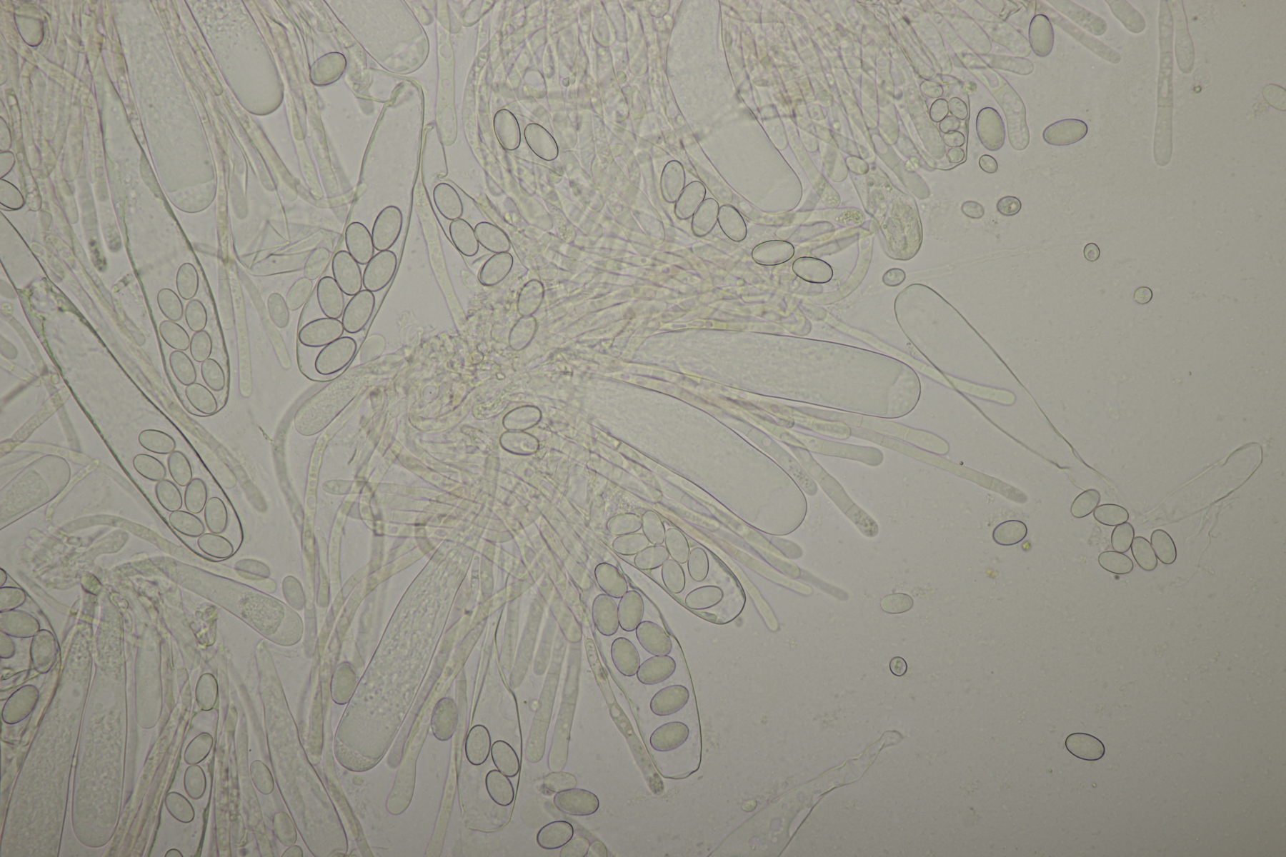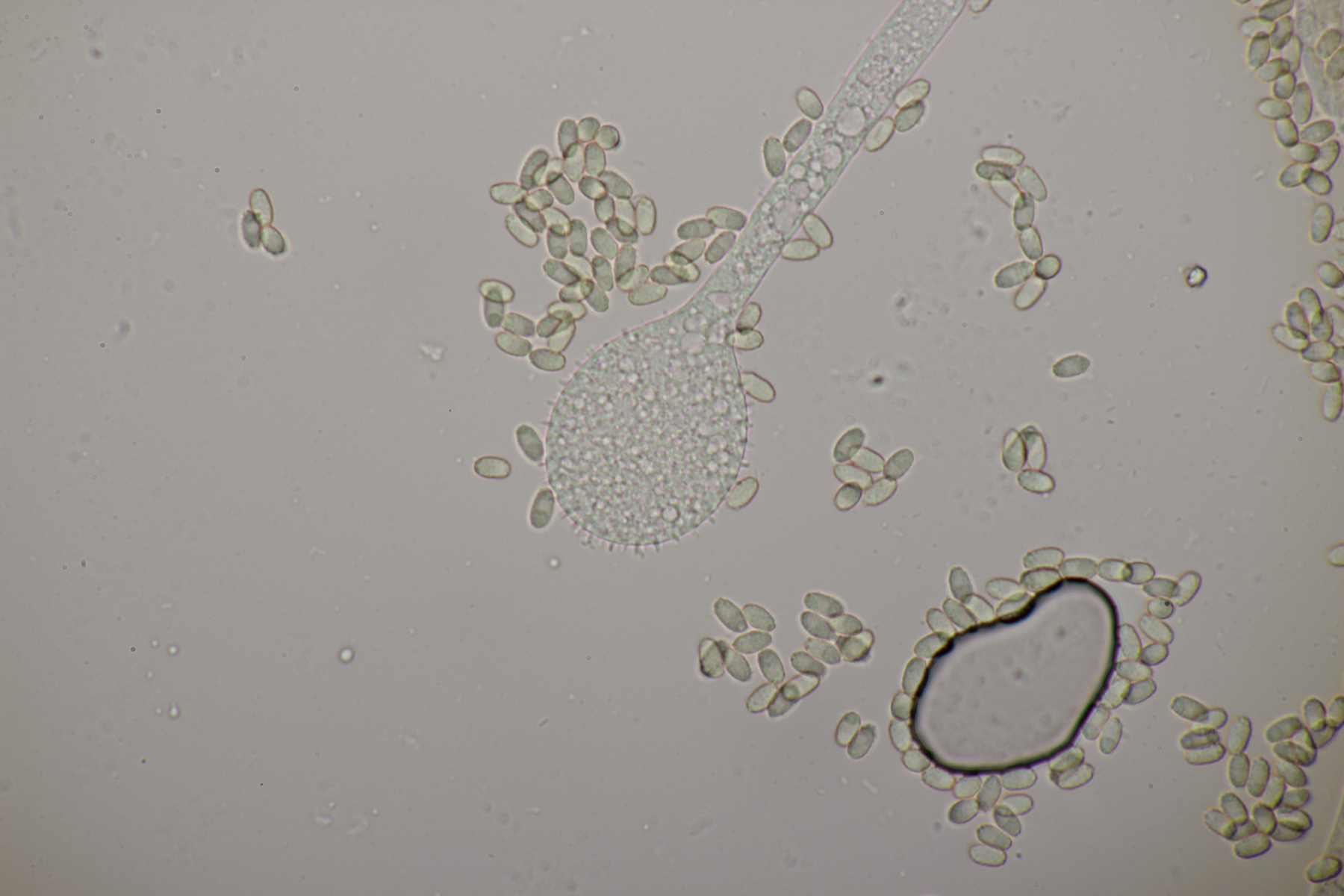 6. Und heute morgen dann ganz frisch eine Sporormiella. Die Sporen messen (51-57) µm x (10-12) µm, die Keimspalten sind parallel, die Asci scheinen unten einen langen, dünnen Stiel zu haben. Insgesamt lande ich da bei Sporormiella grandispora.