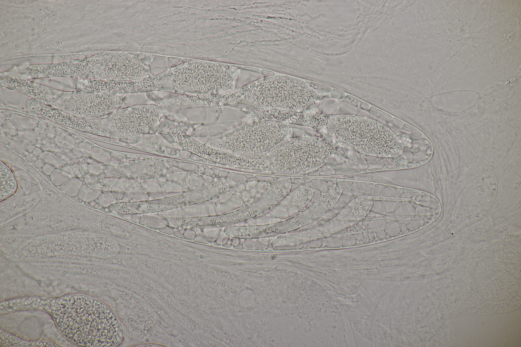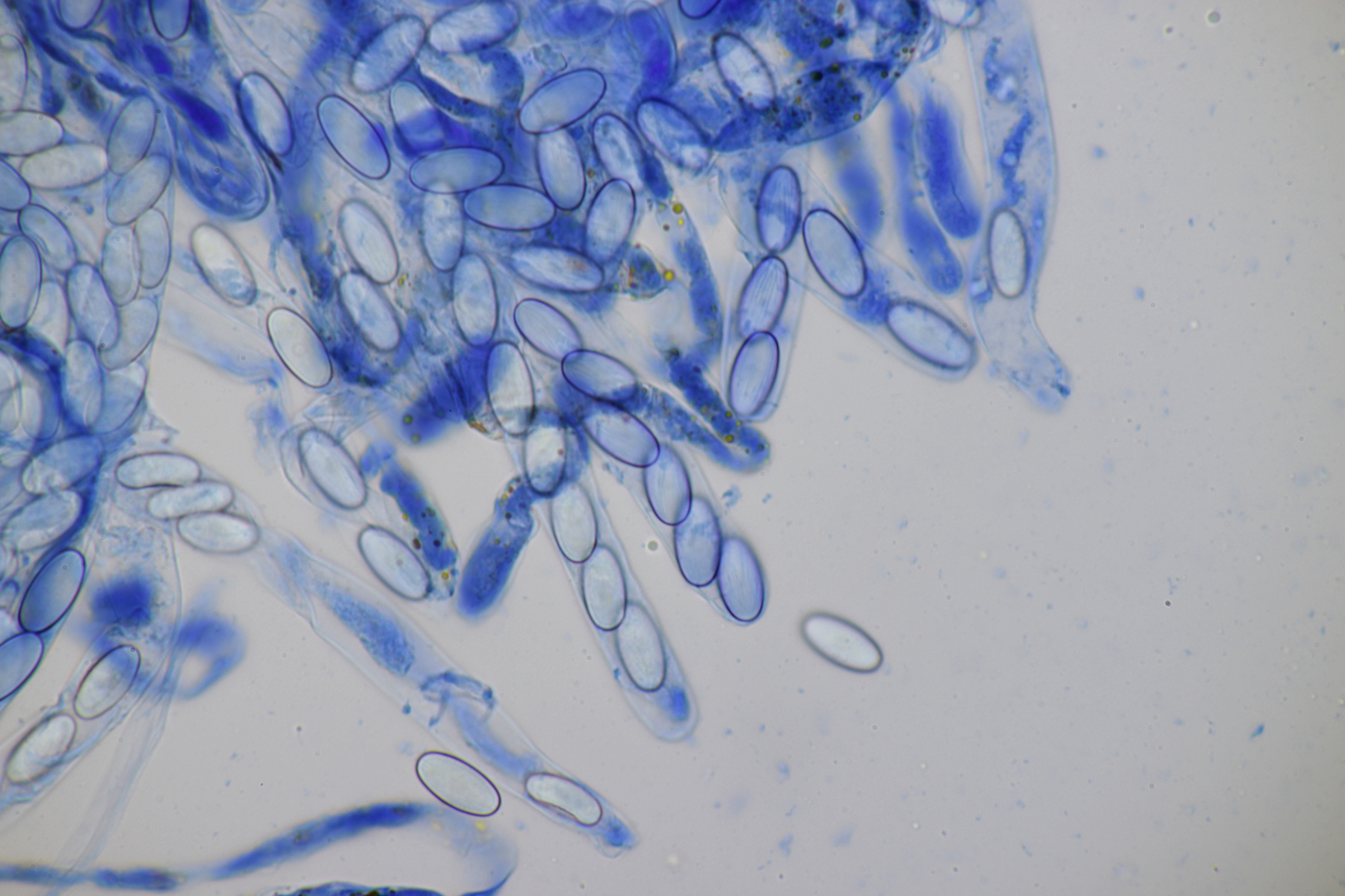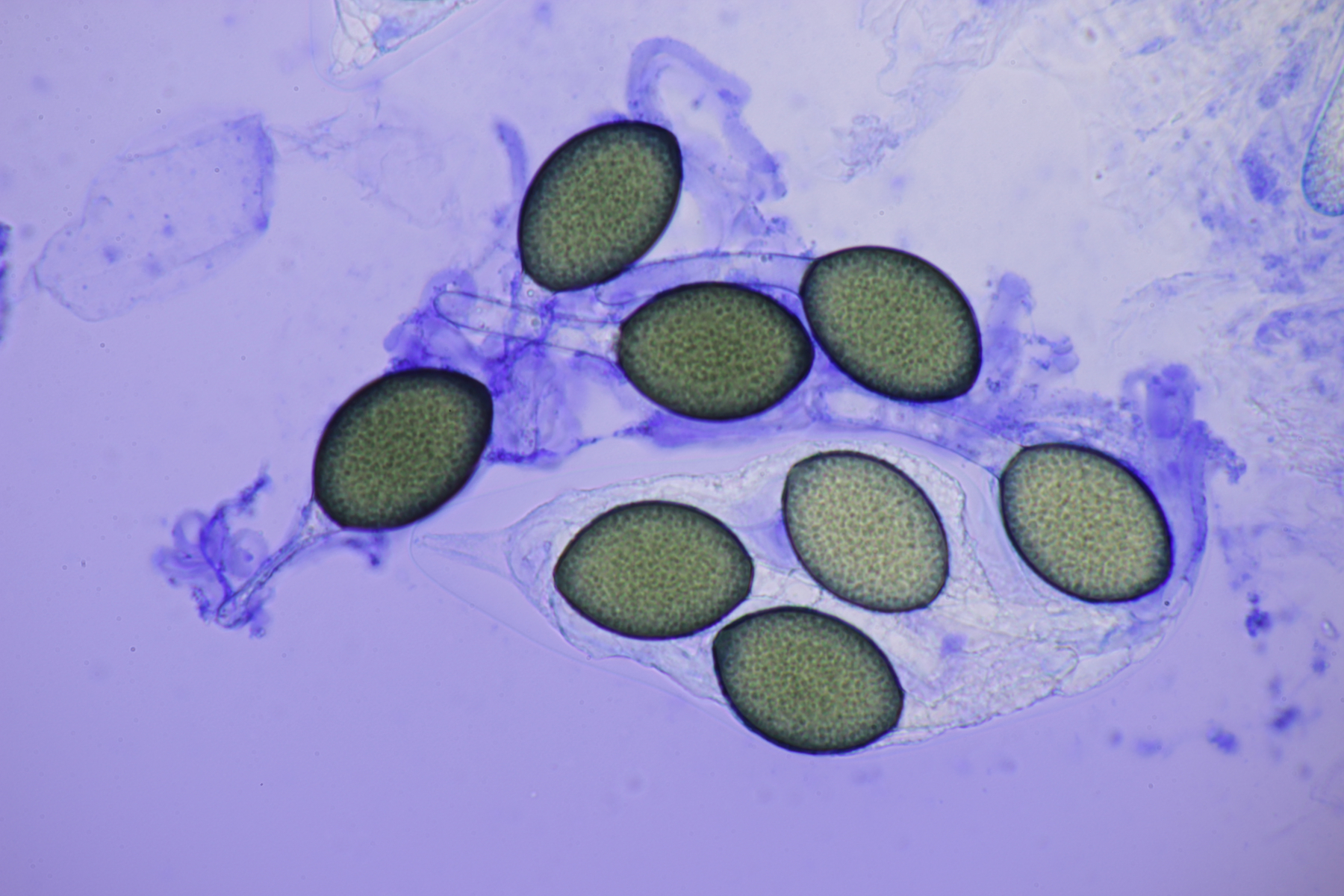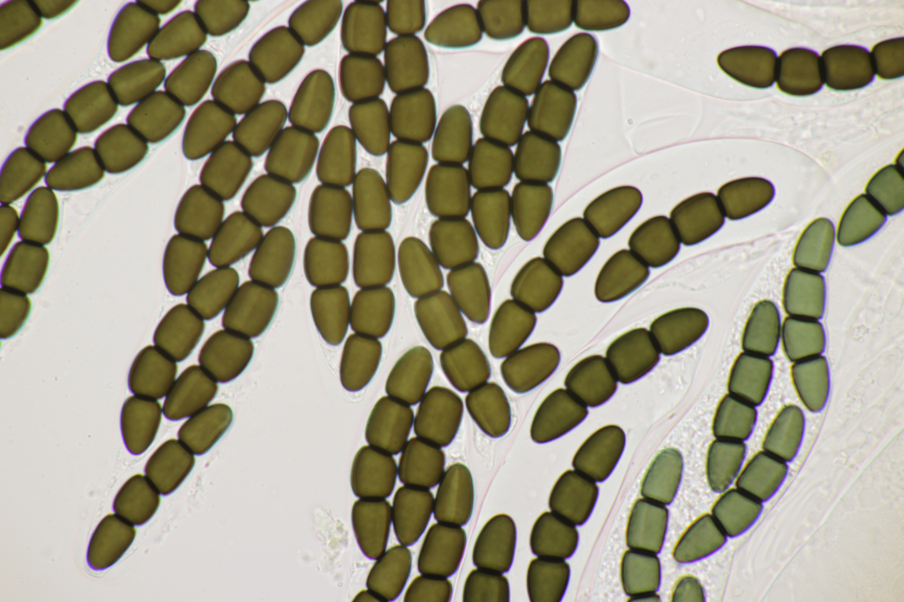 6. Und heute morgen dann ganz frisch eine Sporormiella. Die Sporen messen (51-57) µm x (10-12) µm, die Keimspalten sind parallel, die Asci scheinen unten einen langen, dünnen Stiel zu haben. Insgesamt lande ich da bei Sporormiella grandispora.