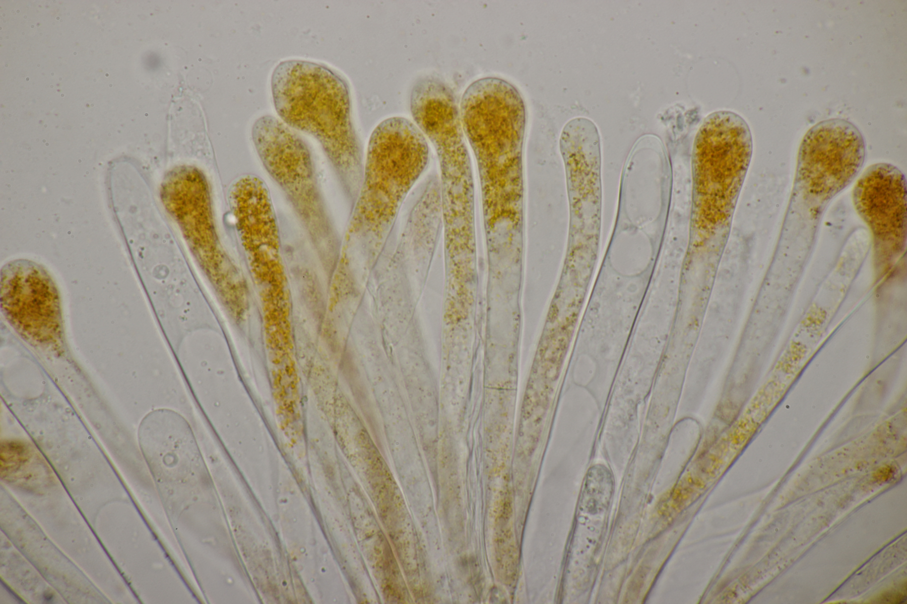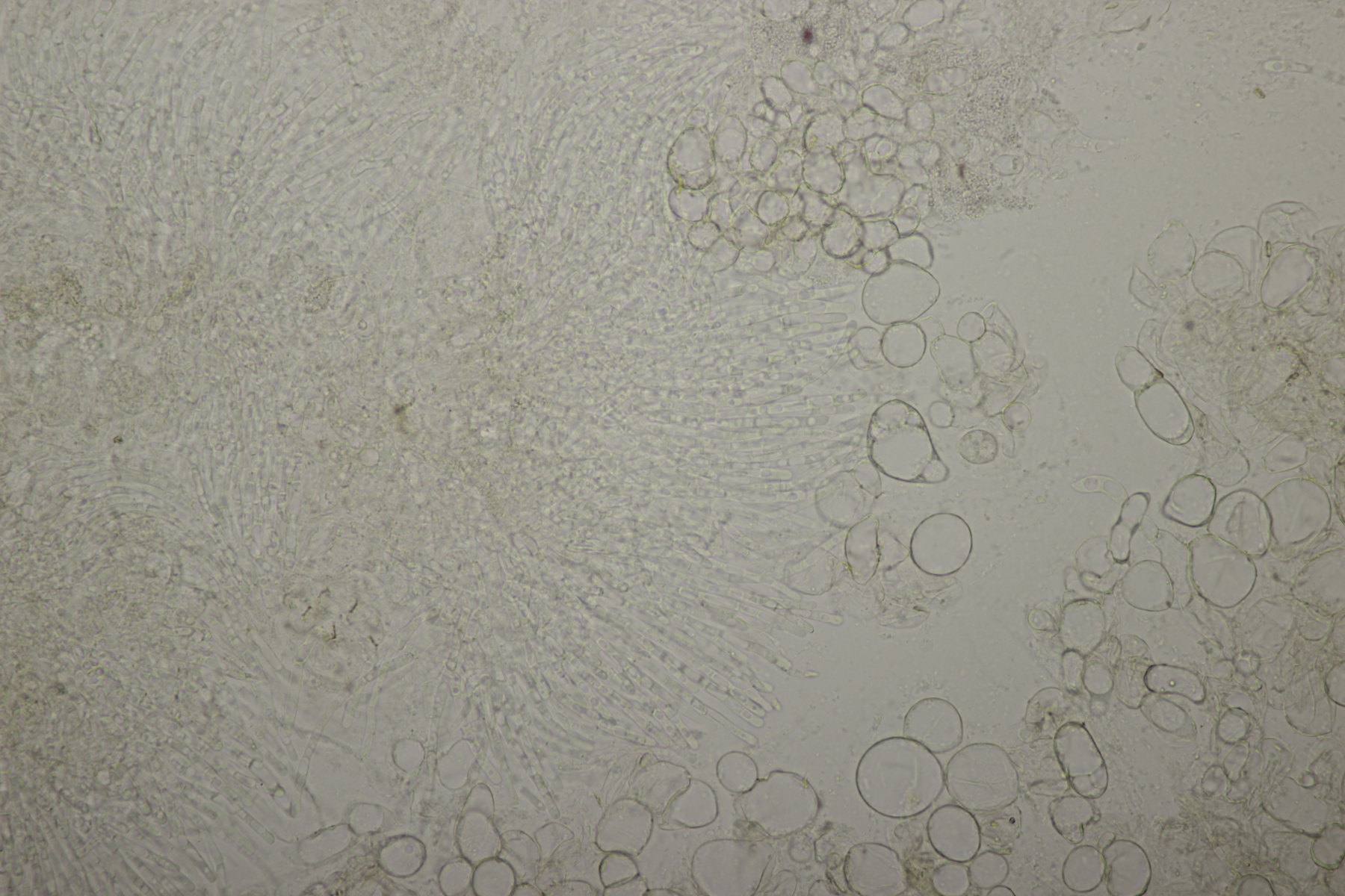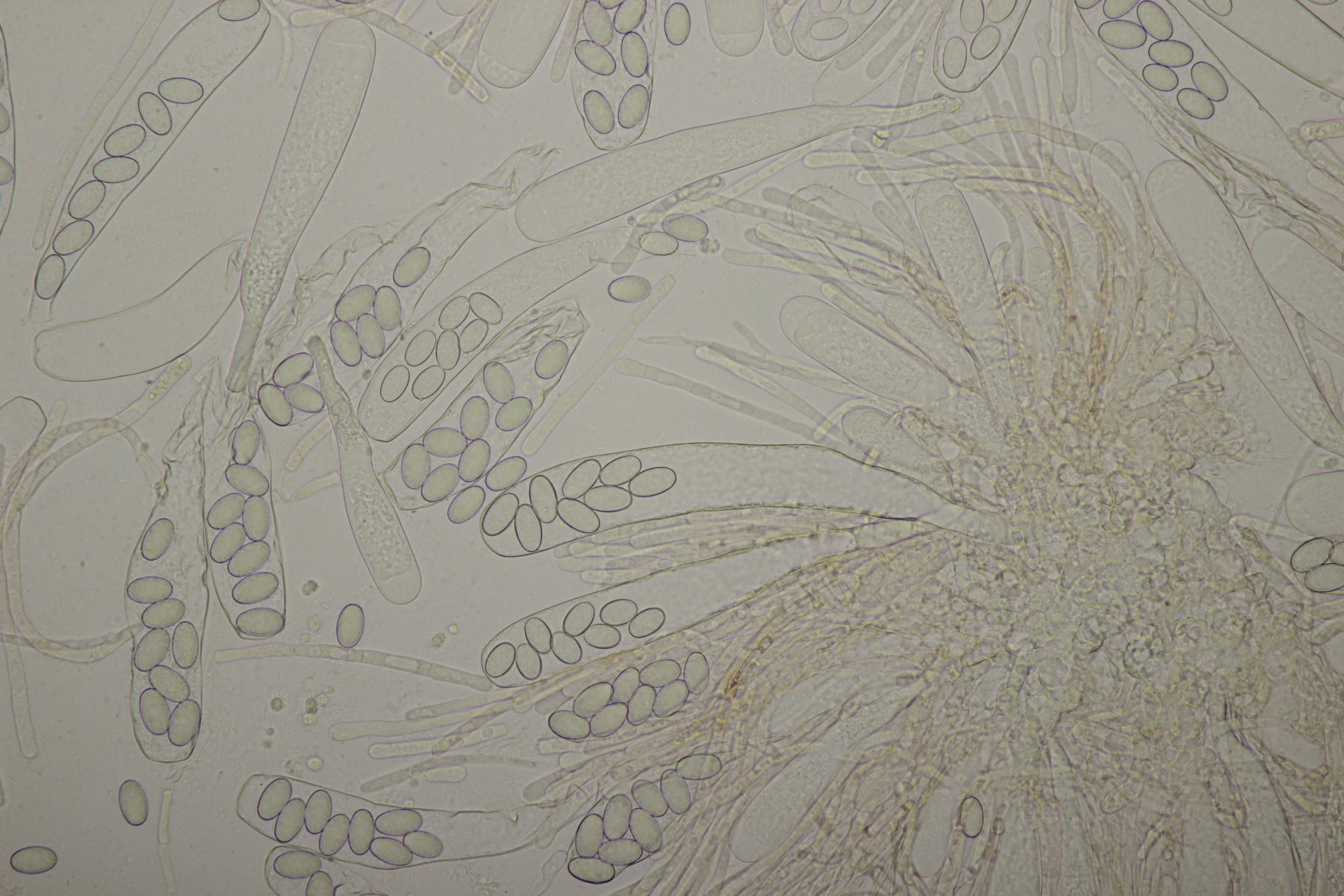 1. Schon im Feld zeigten sich die ersten Bewohner in Form von Cheilymenia granulata, die aber entweder aufgrund der frostigen Witterung oder aber wegen der Frische des Fundes noch nicht reif waren. Zu Hause in der guten Stube reiften dann aber auch noch Fruchtkörper mit Sporen nach.