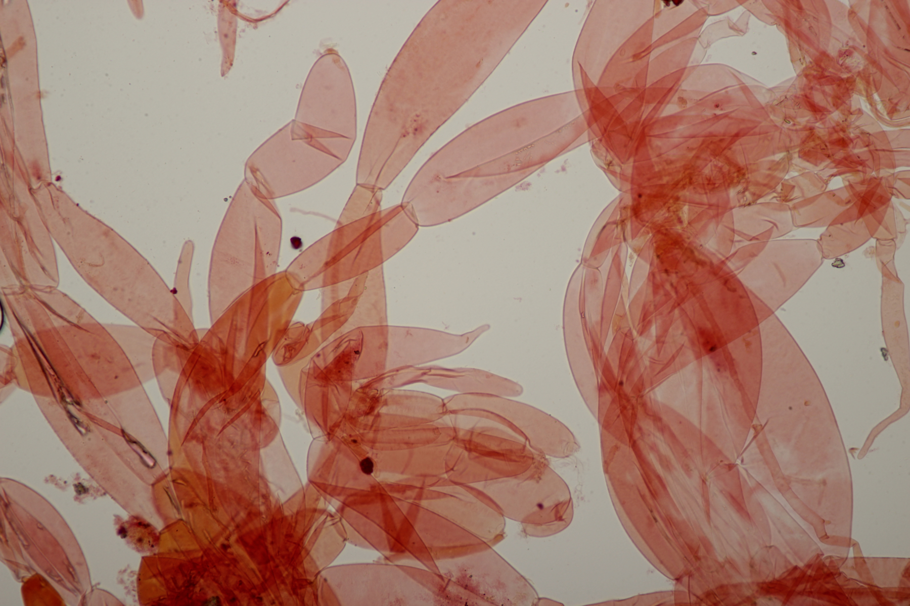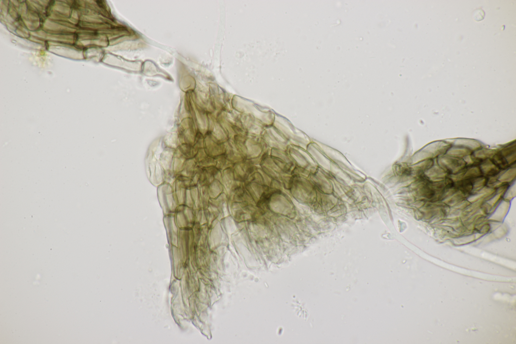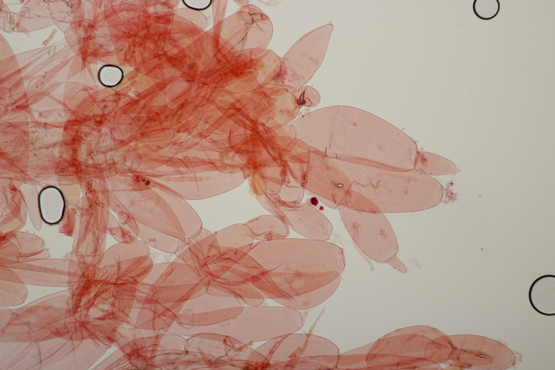 4. Weiter geht es mit einem Schizothecium. Das ist zusammen mit Podospora ja nun wirklich nicht meine Lieblingsgattung...aber es hilft ja nichts. Sporen messen (25-27) µm x (14-16) µm, das Pedicel (9-10) µm x (2-3) µm. Die Perithecien waren nur mit den charakteristischen, dreieckigen Schuppen bedeckt, sonst gab es keine Haare. Damit würde ich Schizothecium conicum für einen heißen Kandidaten halten.