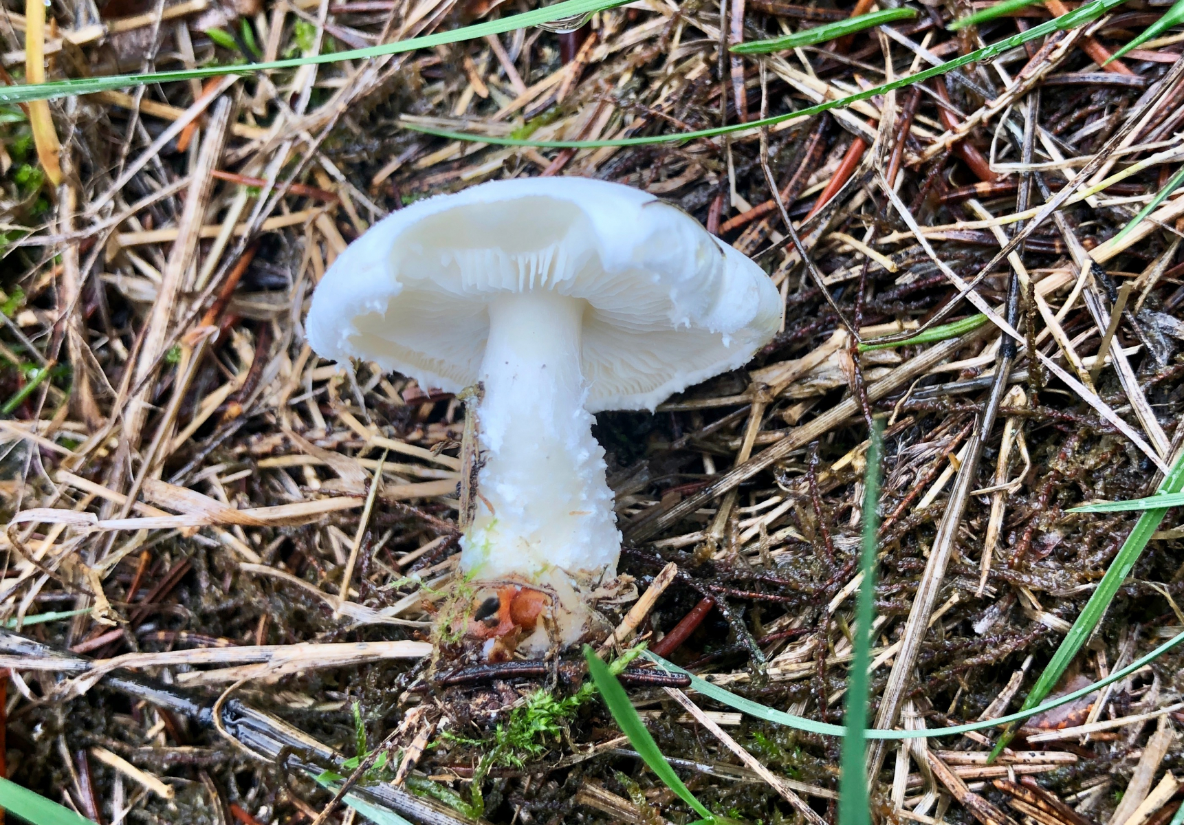 3 Ein ganz weißer Schirmling 4 cm mit kleinen Schuppen