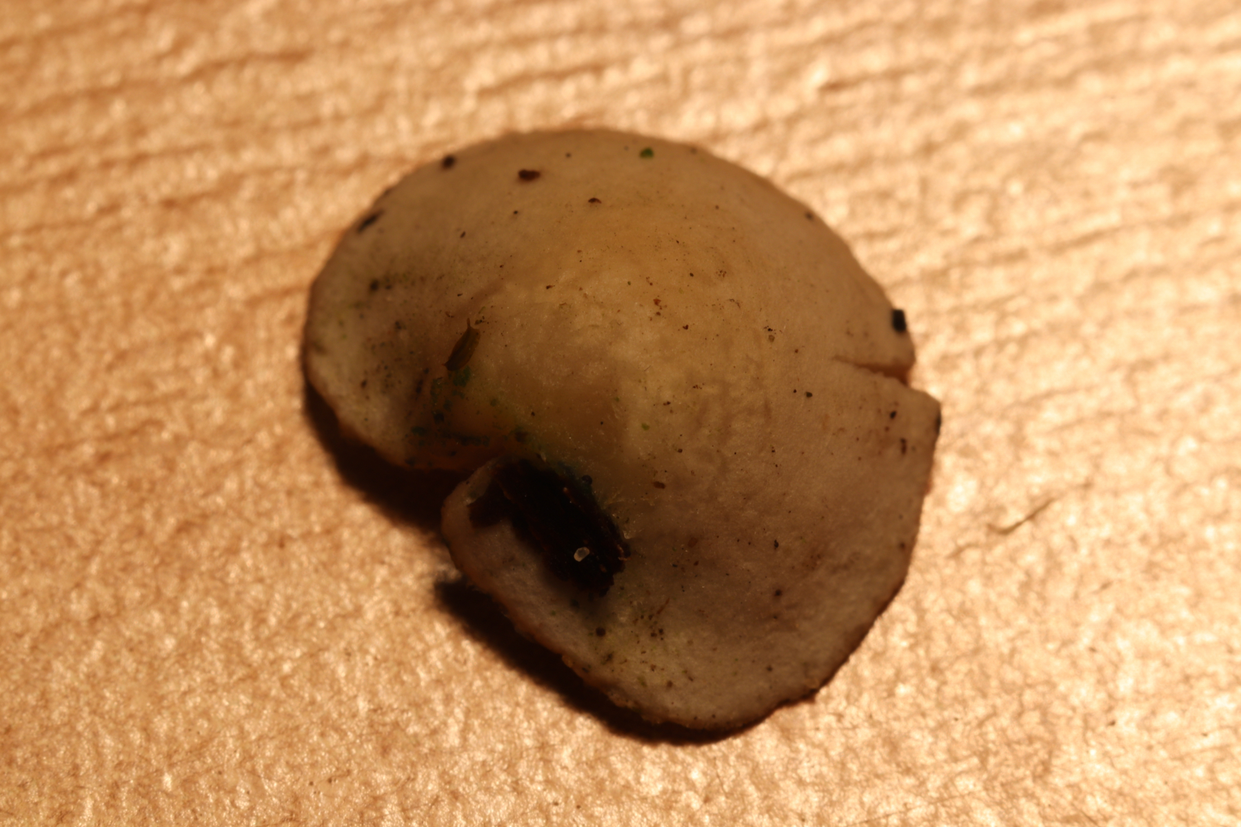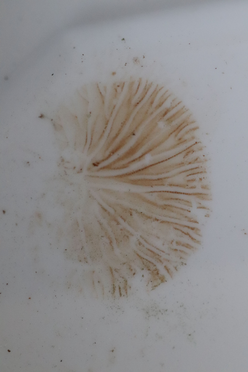 davon abgesehen, dass Bilder von Fruchtkörpern mit Kunstlicht weitgehend suboptimal sind - wie im vorliegenden Fall, sollte der Sporenabwurf in der Tat zur Gattung Crepidotus weisen. Da sieht aber makroskopisch meist der eine wie der andere aus, so dass - wie Stefan das schon anmerkte - eine Bestimmung ohne mikroskopische Merkmale nicht funktioniert.