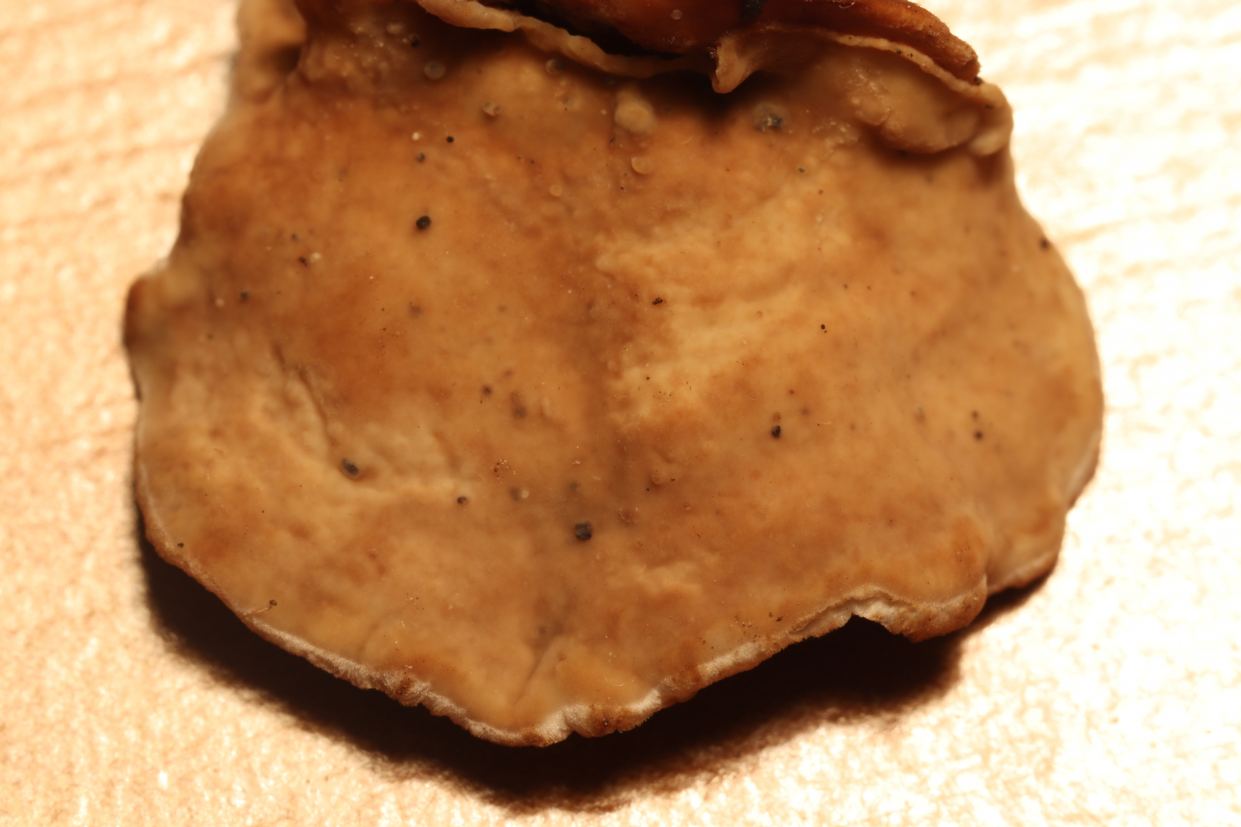ist dies Stereum hirsutum? Der Pilz ist etwa 1,5cm breit, ich habe ihn am 18.1. in Ostwestfalen an Holz wachsend gefunden. Auf der Unterseite konnte ich keine Poren erkennen.