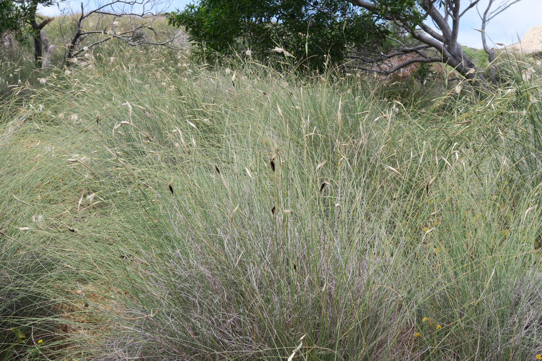 I have managed to find two photos of the infected plants but not of the spores and microscopical images. Must be Ustilago according to host specificity. If the infection is persistent, I can fetch samples this April and work on it together. I am under the impression (now I am not so sure!) that there was smuts on a nearby wheat or barley field but it can also be another species. Photos from Gnejna area (mt), 60-80m asl, April 2017.
