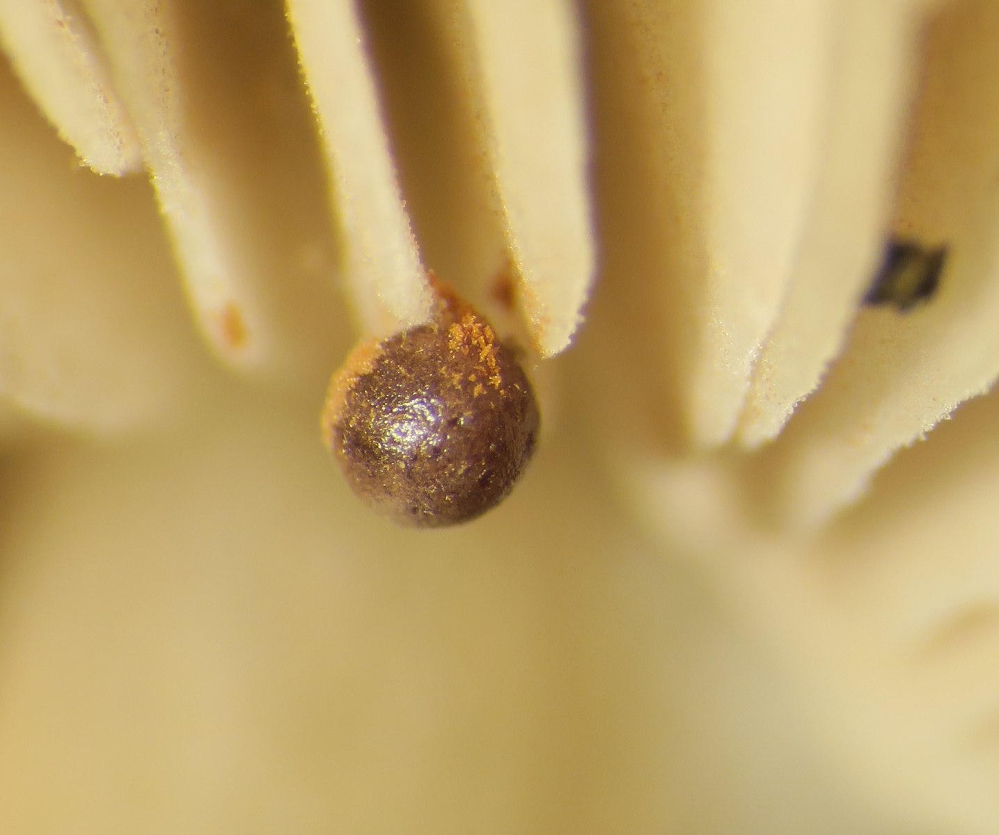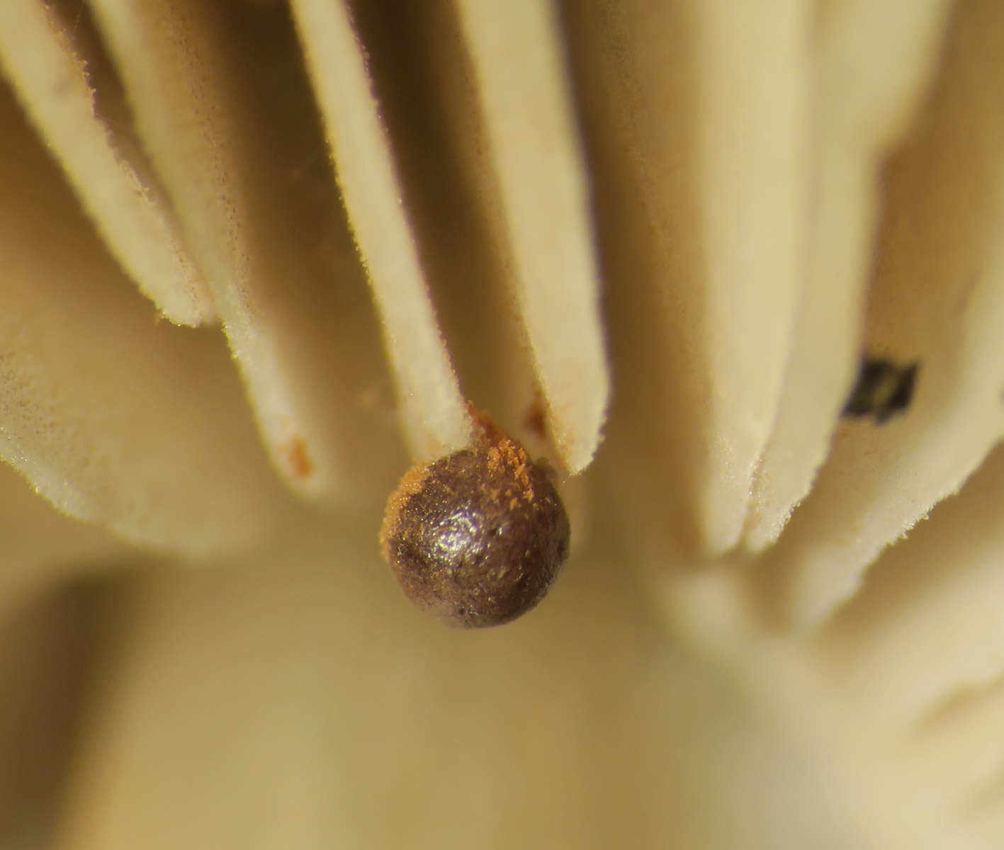 I can confirm that the spherical body was attached and as if part / continuous from the gill. The idea of being a slime mould is possible but personally I don't know of any examples. Also, I would expect some verrucose-spinulose globular spores inside. The myserty continues... Thanks for the warm greeting.