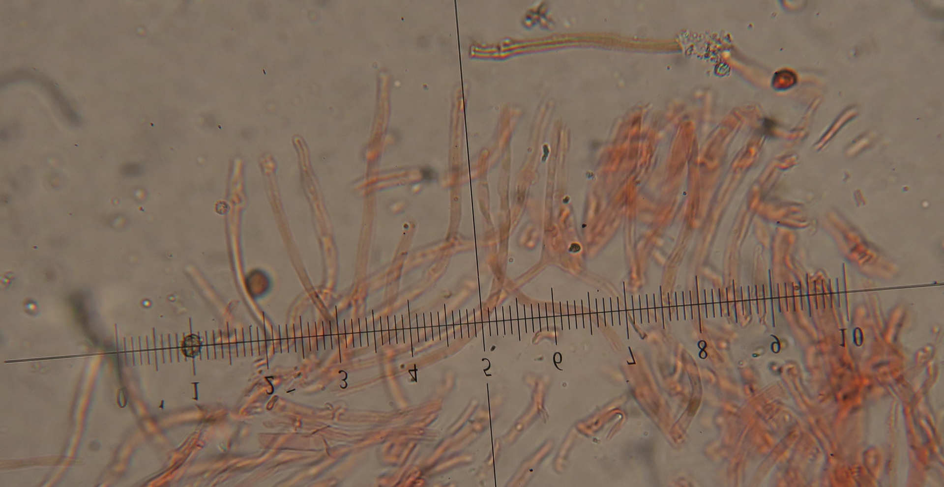 Three specimens under Cistus and Thymus. Pileus 5-6cm, pale yellow, dry, though, glabrous-polished (when cleaned from debris), very bitter taste, no volva or ring or veil (at least not distinct), spore print light cinnamon brown, lamella adnate, stem shiny pale brown. Spores pip-shaped, surface rough (bumpy). IKI inamyloid (cell wall appears dextroid?!).