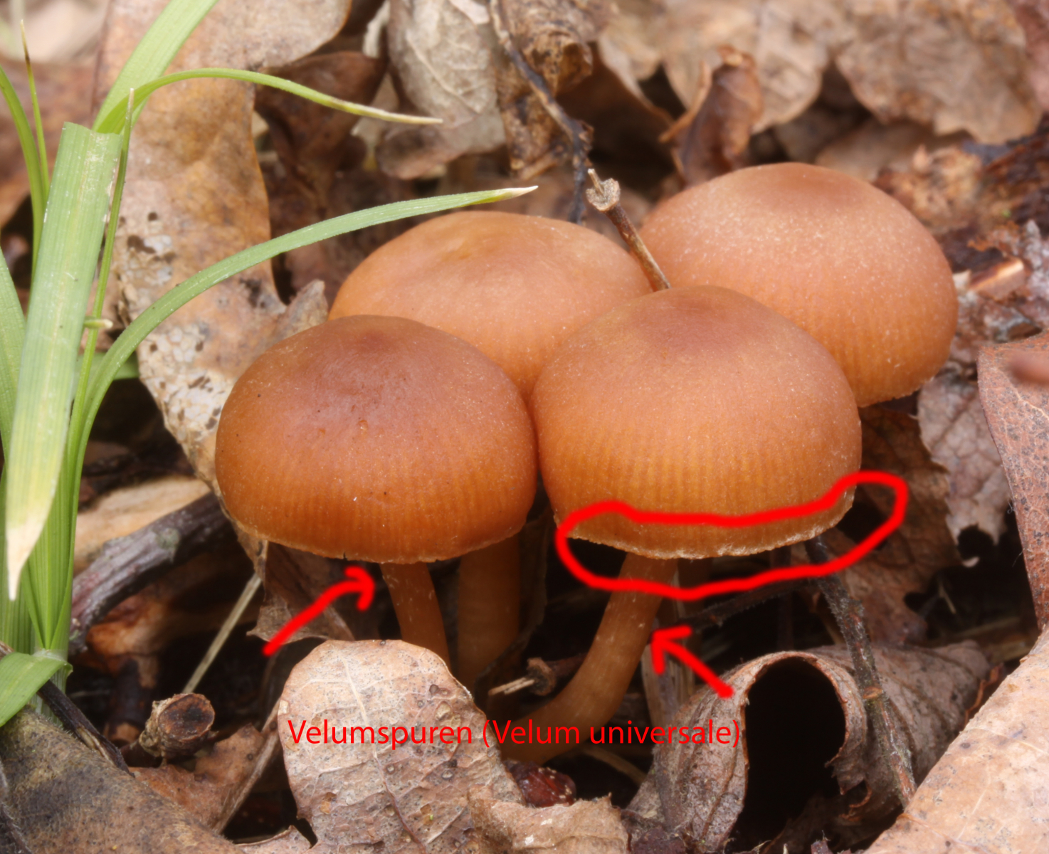 wenn ich mir das 1. Bild ansehe, meine ich, am obersten Pilzchen im oberen Stieldrittel Reste eines Velums zu sehen, ebenso wie evtl. Reste am Hutrand des 2. Pilzes. Im "Fungi of temporate Europe" heißt es zu Tubaria: "with broadly adnate gills and a well-defined ring".