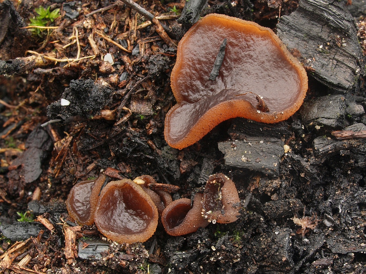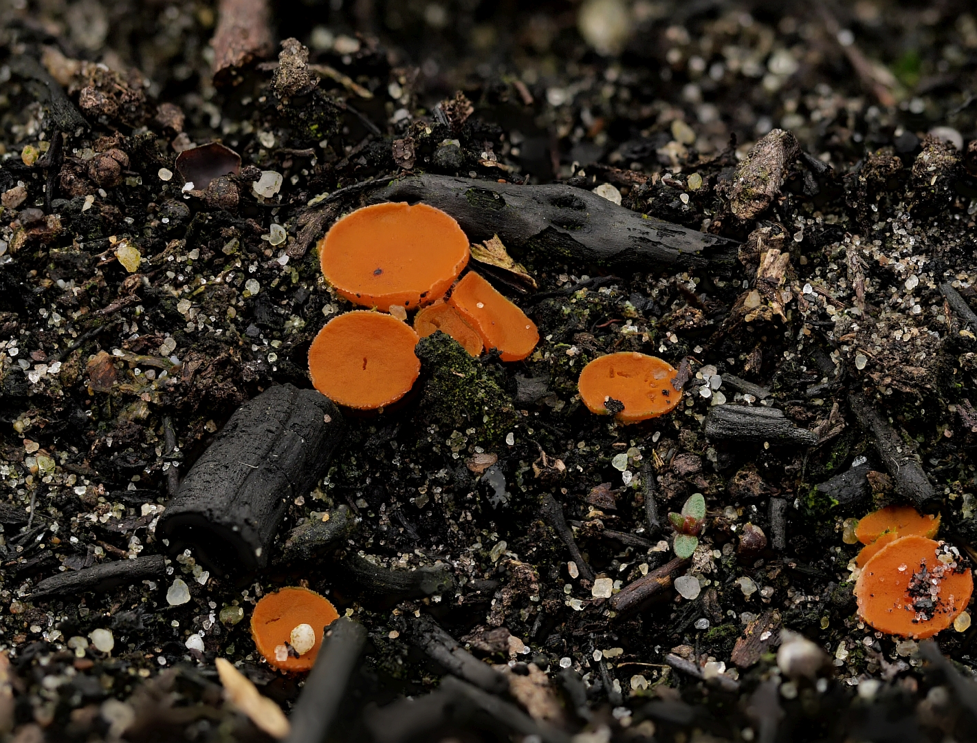 Der sehr schön auch von Sennepilz hier im Forum vorgestellt würde. Aleuria exigua