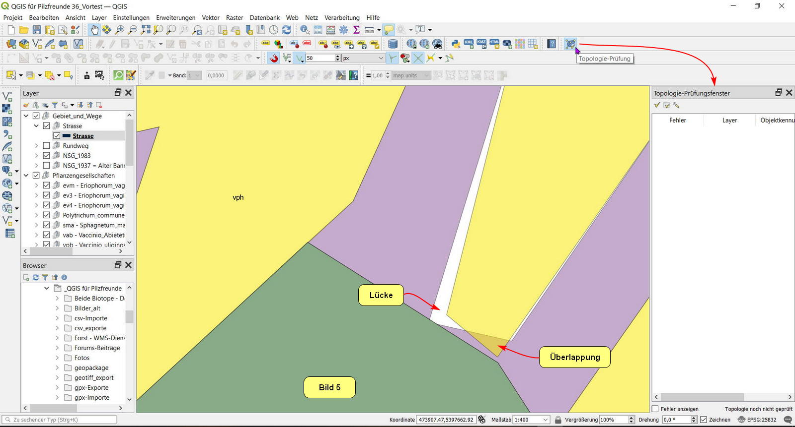 Bild 5 zeigt einen Ausschnitt der Projektkarte, in dem man zwei Lücken und eine Überlappung erkennt.