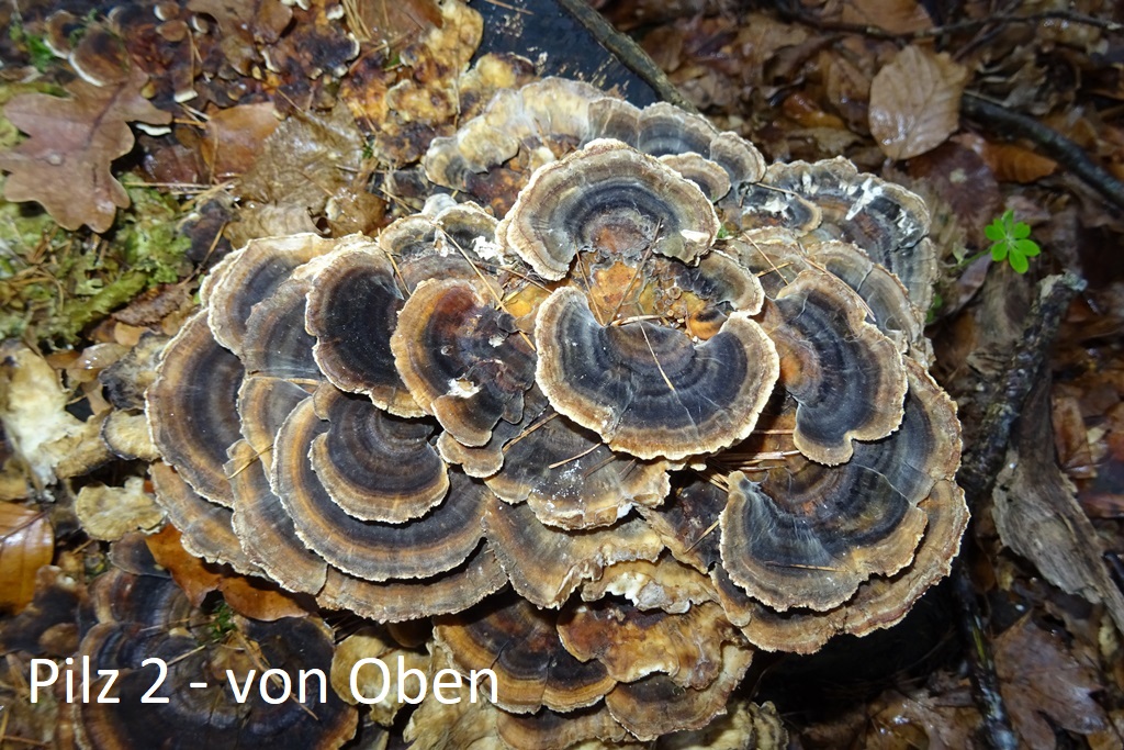 so vom ersten Eindruck sind das alles Schmetterlinge. Wenn diese dunklen, schwarzblauen Linien in der Zonierung auftreten, ist die Schmetterlingstramete eindeutig. Pilz 1 hat noch leichte Chancen Trametes ochracea zu sein, weil diese Zonierung/Linien fehlen. Da müsste dann das Schnittbild für die Bestimmung herhalten...