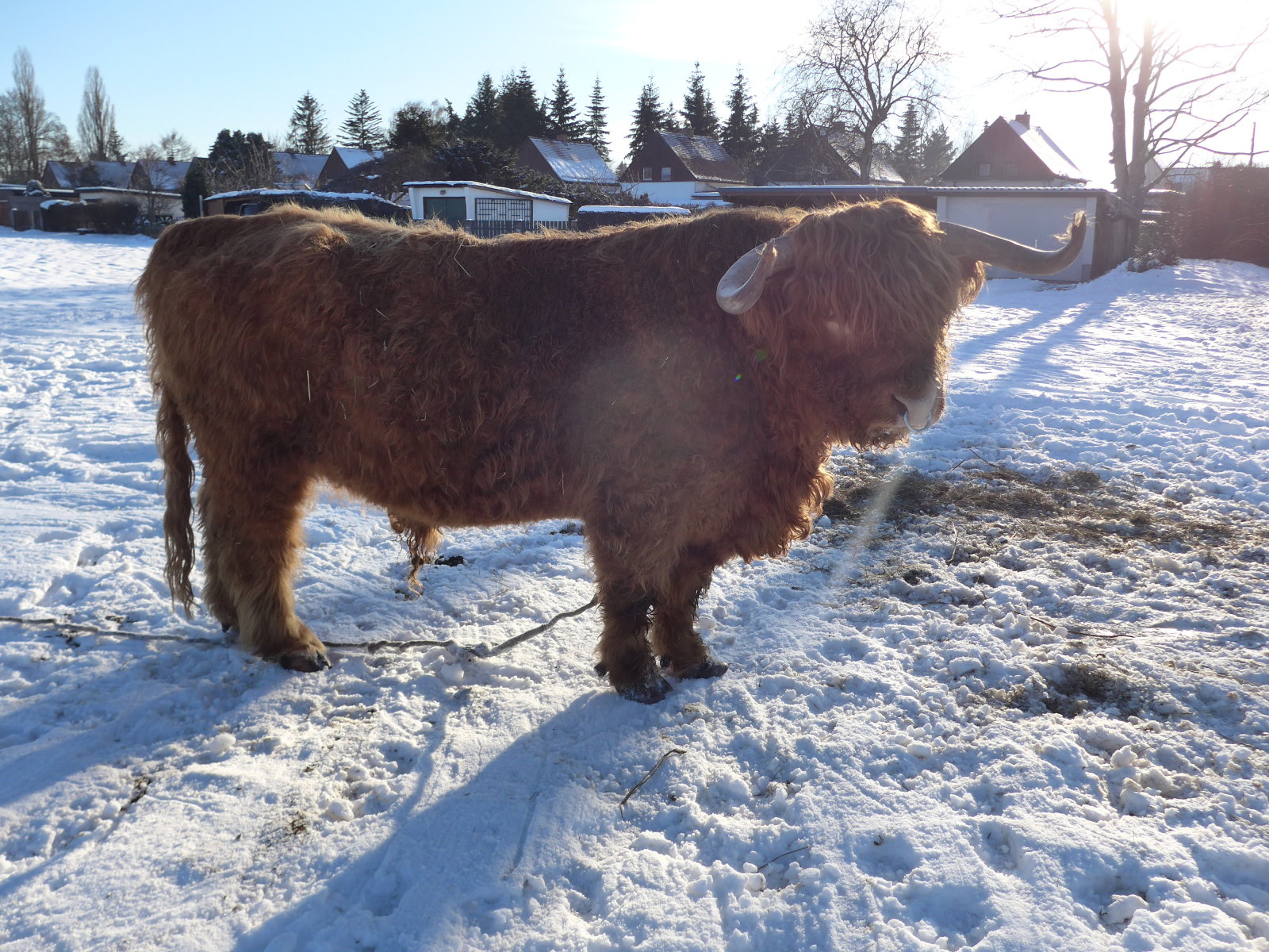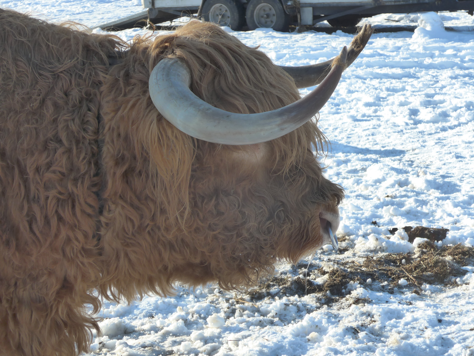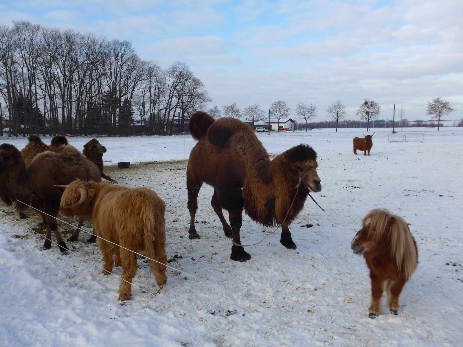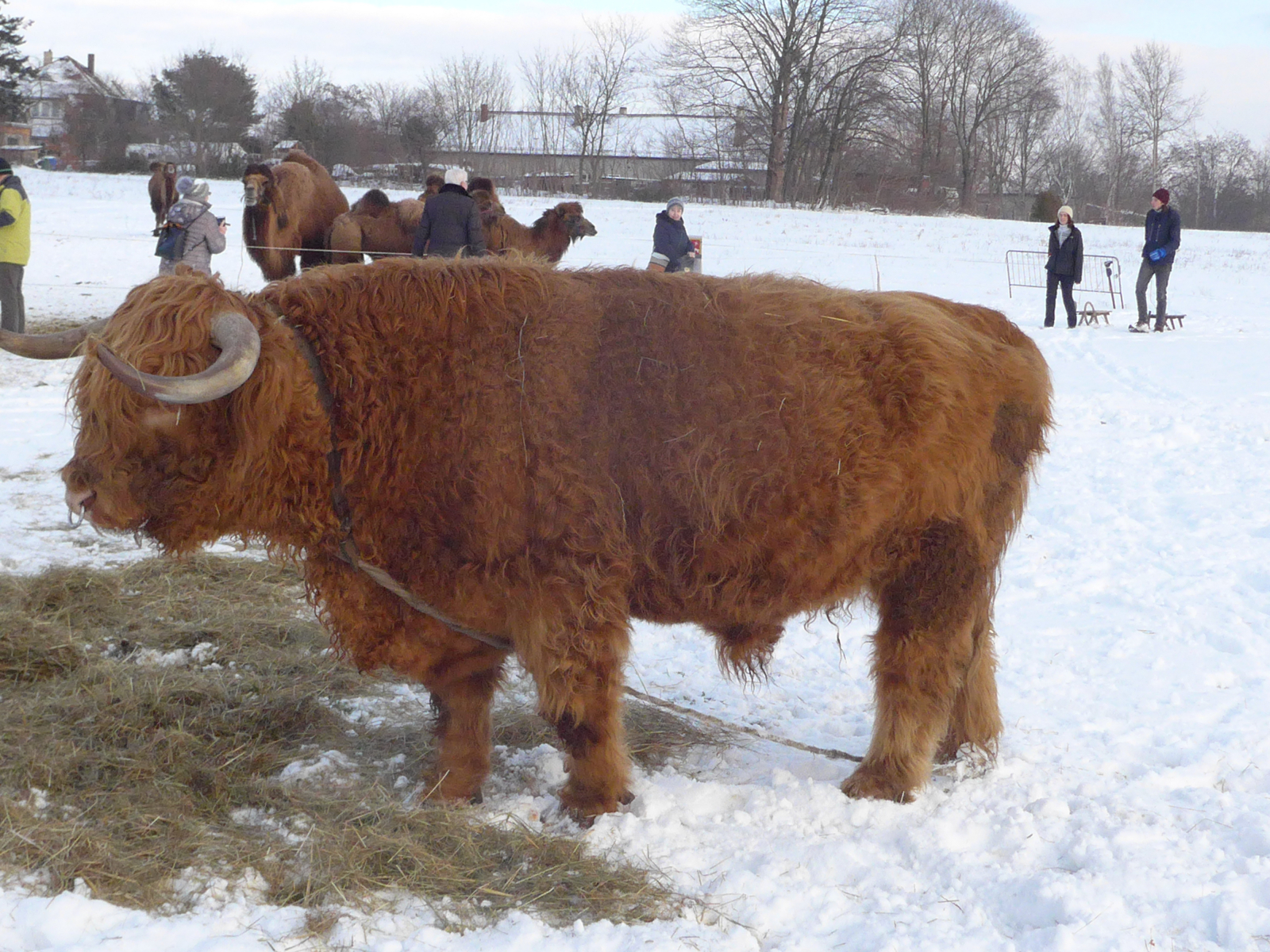 der Schnee ist wieder da und ich musste heute noch Mal raus und neue Bilder von den süßen Kameln und Hochlandrindern machen.