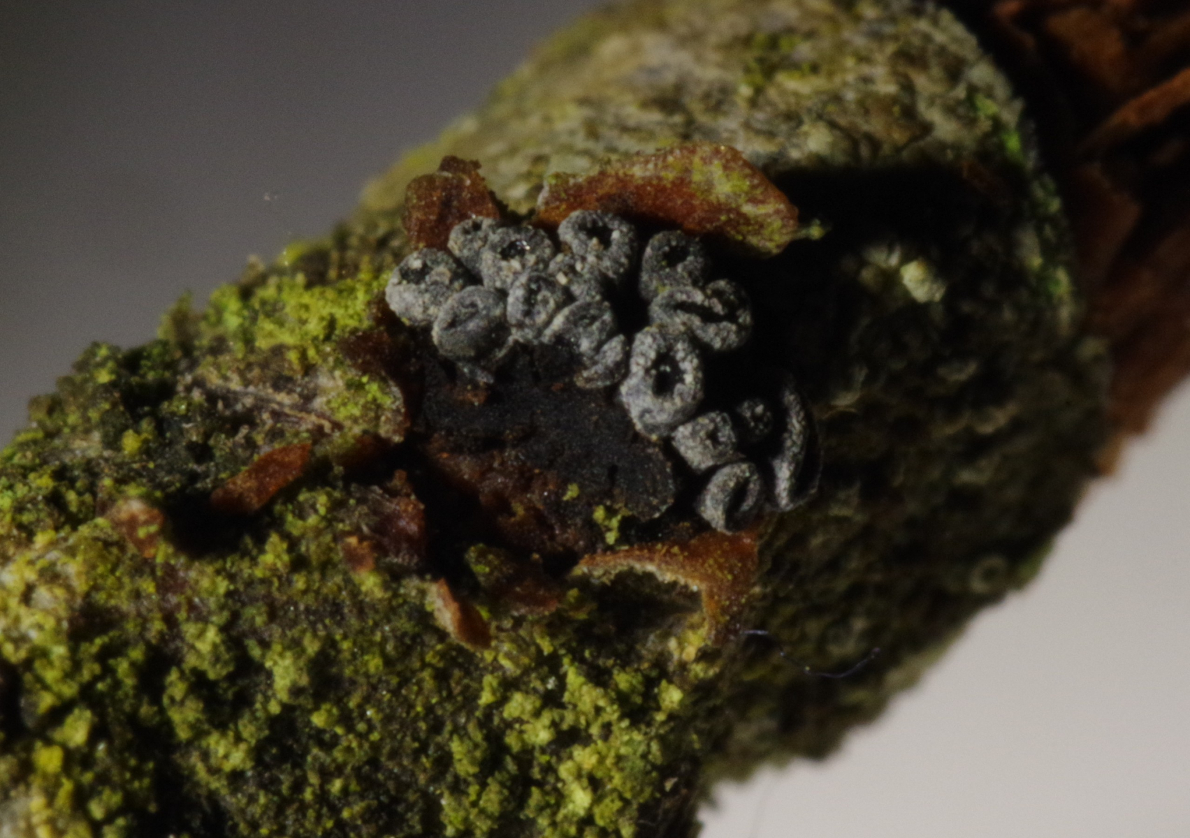 am gleichen toten Apfel, an dem ich Sarcodontia crocea gefunden hatte, gibt es (jetzt) noch diverses Kleinzeug