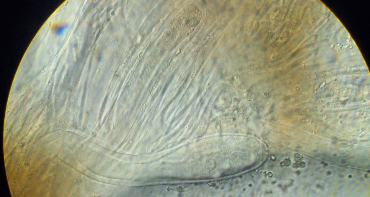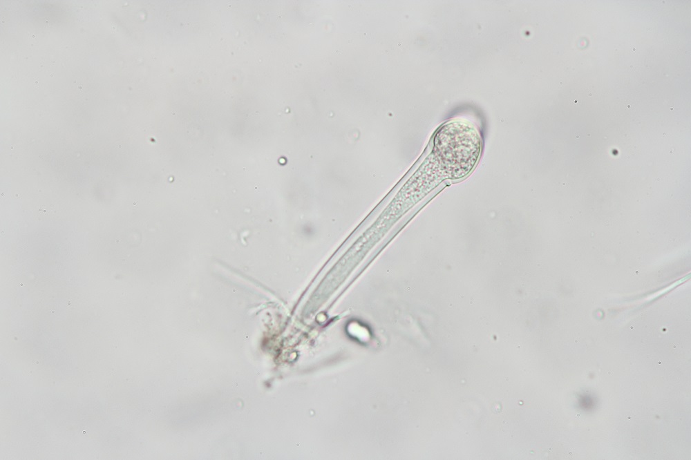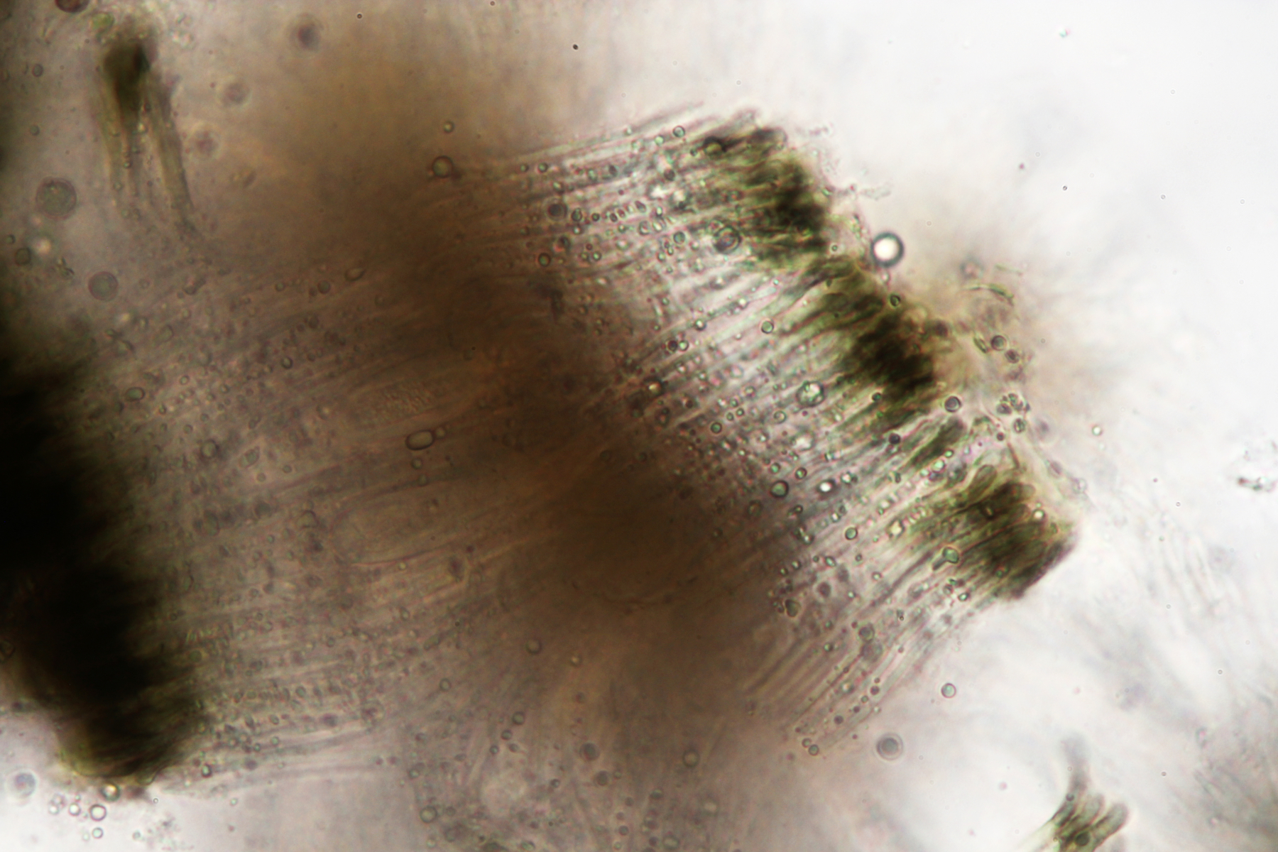 Die Fruchtkörper sehen aber leider noch nicht reif aus. Dennoch ein Blick durchs Mikro schadet nicht