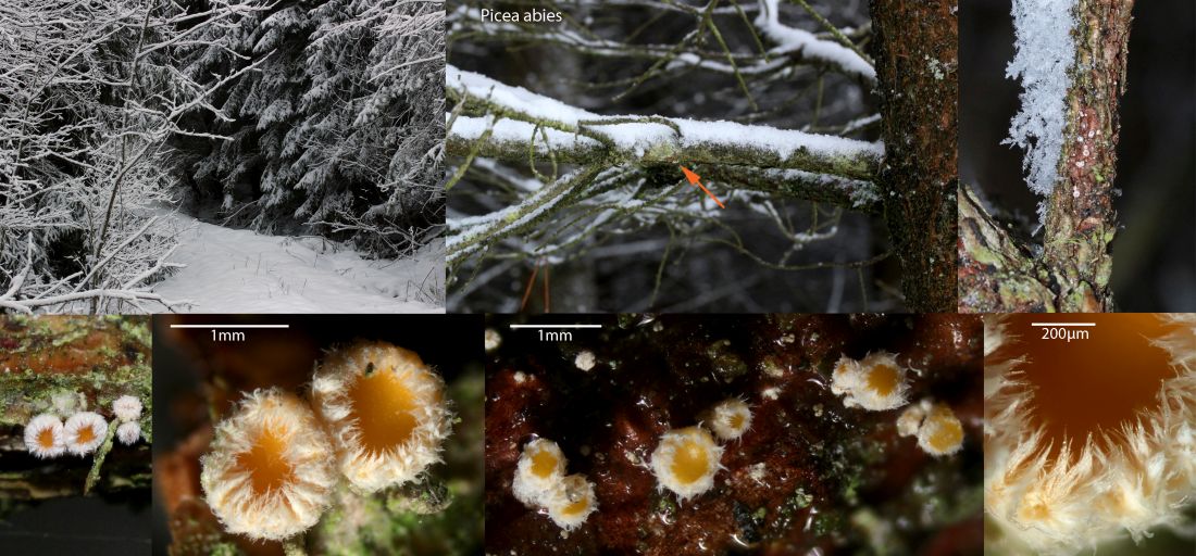 zur Verbreitung von Lachnellula calyciformis kann ich noch sagen, dass ich die bei mir bisher ausschließlich an Tanne gefunden habe. Da allerdings kommt sie recht verbreitet vor, zumindest hier wo es nicht so viele Tannen gibt. Hab ich hier schon mal vorgestellt.