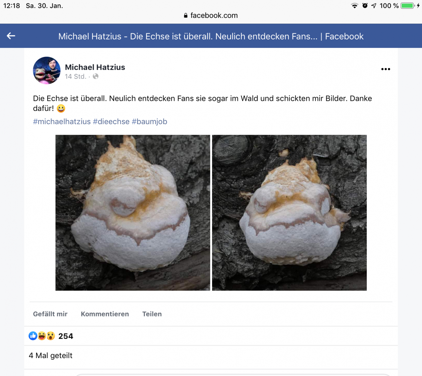 Das hat uns auf die Idee gebracht mal - nicht ganz so ernst - in die Runde zu Fragen, ob auch ihr "Pilze mit Gesichtern" auf euren Pilzwanderungen fotografiert habt. Wir würden uns über einige Antworten mit Bildern zum Thema freuen ![]()