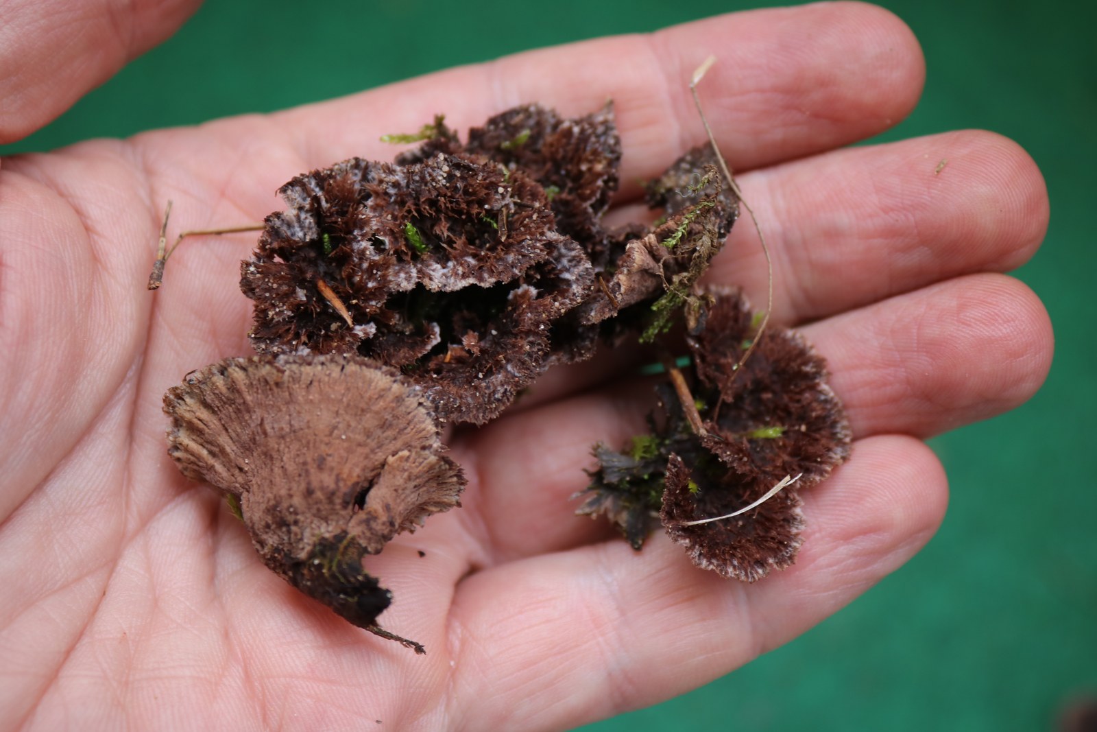 Ich glaube bei verschiedenen Pilztouren den Nelkenförmigen Warzenpilz (Thelephora caryophyllea) und den Gemeinen Erd-Warzenpilz (Thelephora terrestris) gefunden zu haben.