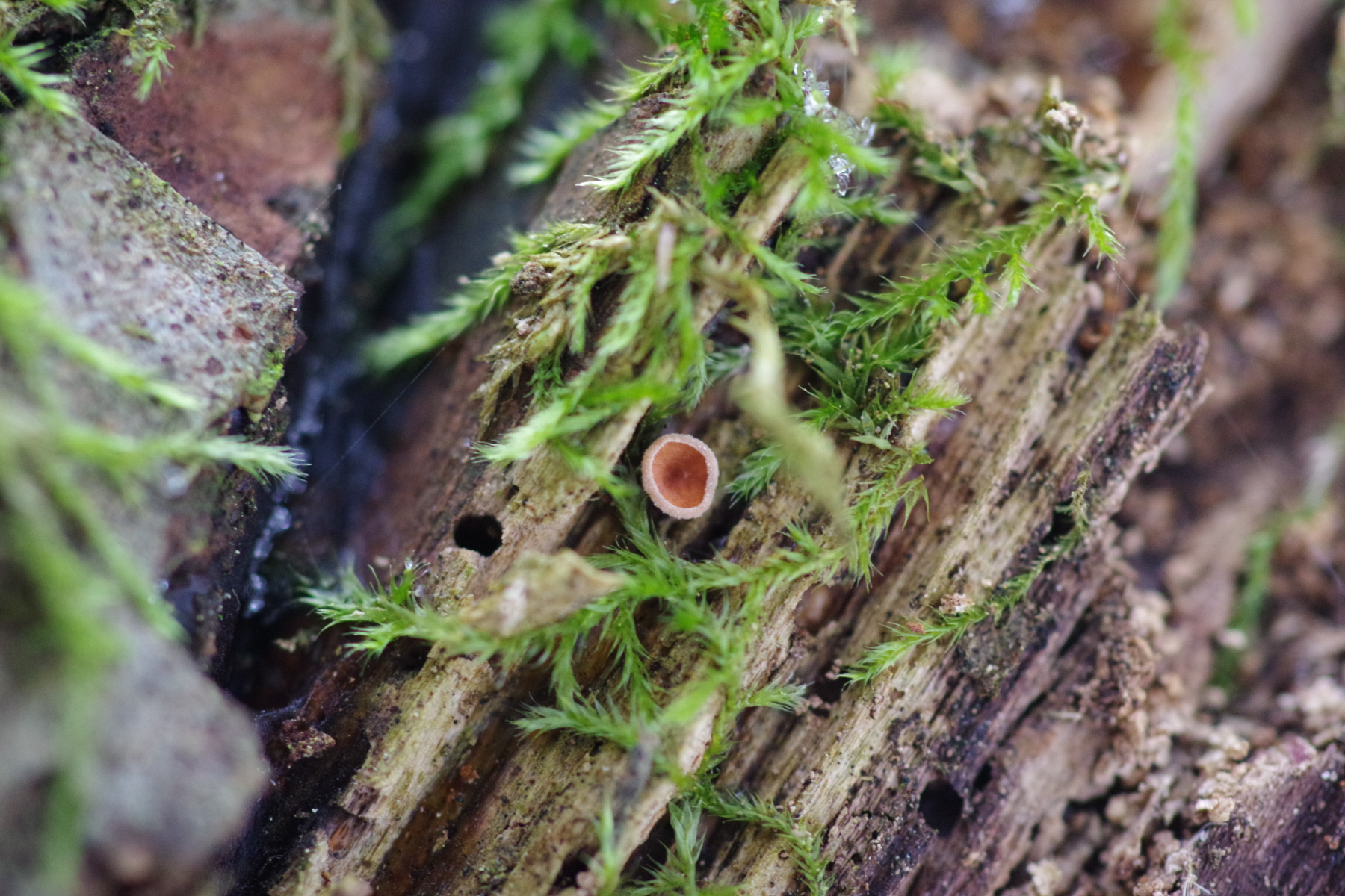 2) Gleich daneben an einem toten Ast von Salweide dieser Becher in Augenhöhe, etwa 3 mm im Durchmesser,