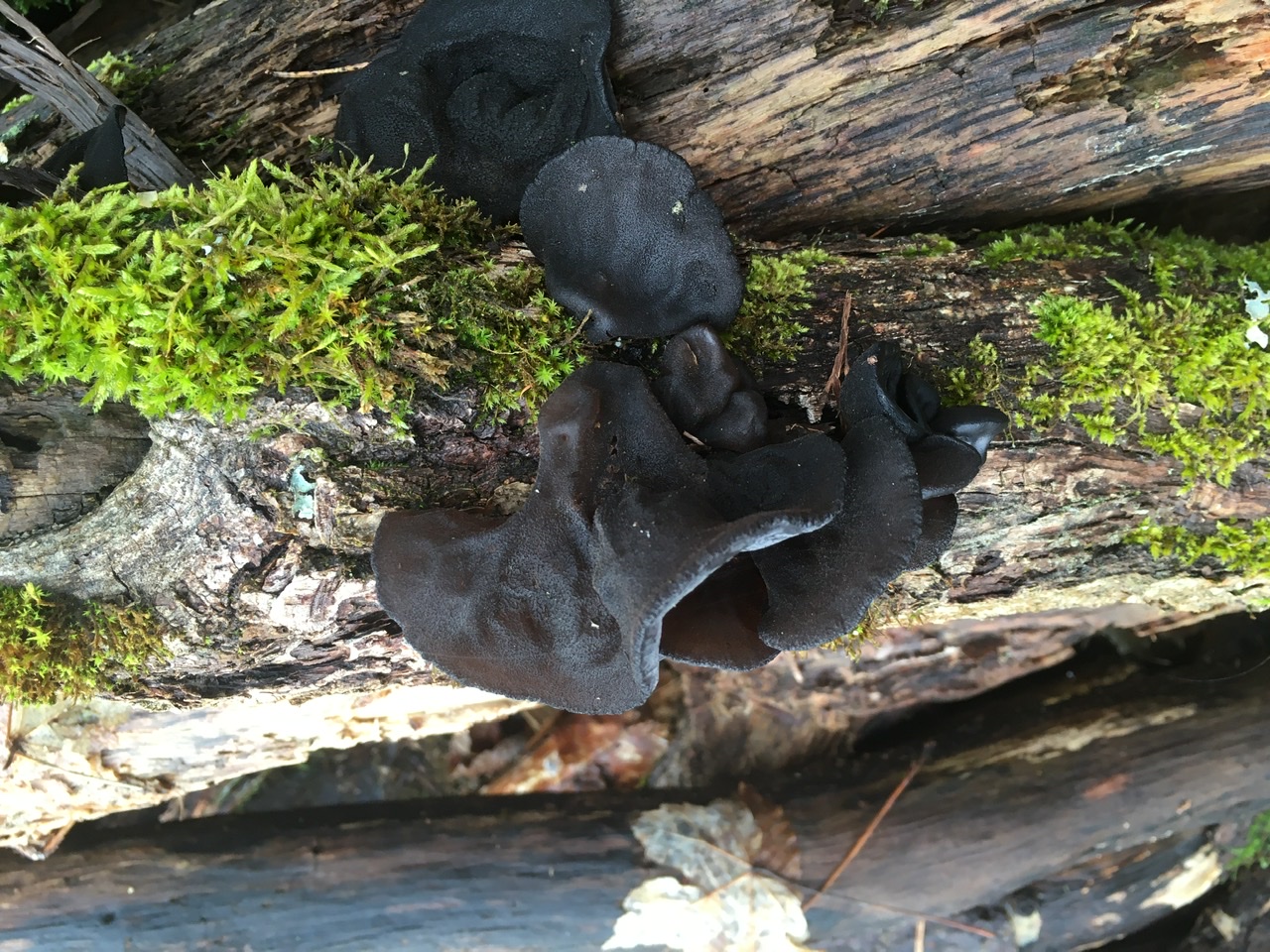 in Ermangelung von Schwarzem Holunder (hier gibt es nur den Roten) hatte ich eigentlich nicht mit Judasohren gerechnet, und so ganz typisch sind sie nicht, deswegen wäre ich über eine Bestätigung der mich, sofern zutreffend, neuen Art erfreut. Ganz ausschließen möchte ich die diversen Exidia-Arten nicht. An einer jungen, toten Eiche. Der größte mag so um die 5-6 cm groß sein.