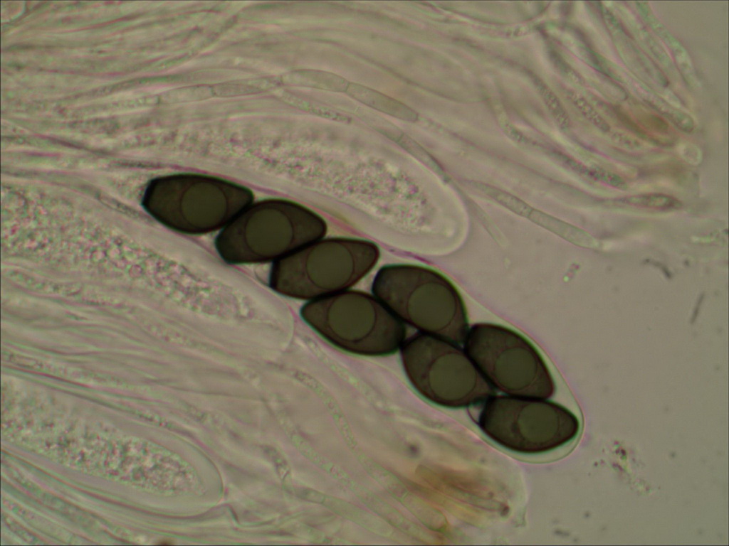 unbestimmter Pyrenomycet an Schilf, hyaliner Mauersporer, J- Sporen etwa 33x10.5µm