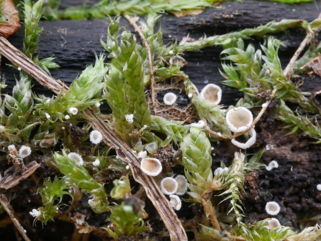Bryoscyphus dicrani, ebenfalls im Gipskarstgebiet überall zu finden