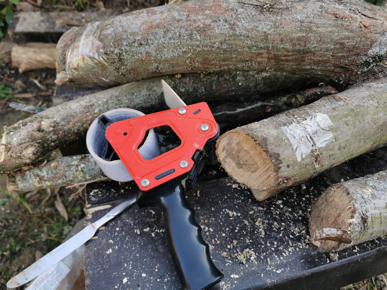Ach ja, ich habe die Schnittimpfmethode verwendet. Dafür habe ich mit der Kettensäge in die Knüppel und Stämme geschnitten, so dass ich eine maximale Fläche erhielt, ohne aber durch zu schneiden. Da habe ich dann die Brut rein "gestopft" (nicht zu fest stopfen), da die Schnitte meiner Kettensäge relativ schmal sind (die kleine Stiehl MS170). Später habe ich dann versucht die Schnitte etwas breiter zu machen. Die beimpften Schnitte habe ich dann mit Paketband umwickelt, damit nichts raus fällt und es Kleintiere nicht all zu leicht haben. Insbesondere die Körnerbrut ist da gefährdet, aber ich bin guter Dinge. Ich denke, es wird gut funktionieren. Im Moment habe ich das frisch beimpfte Holz gestapelt und mit alten Bettlaken abgedeckt, die ich regelmäßig befeuchte. Das aber nur in der ersten Woche, ungefähr. Später wird nach Bedarf befeuchtet. Dann werde ich eine gelöchterte, möglichst weiße Plastikplane nehmen. Die Löcher sind wichtig, damit in geringem Maße Luft zirkulieren kann, es aber trotzdem ausreichend feucht bleibt.