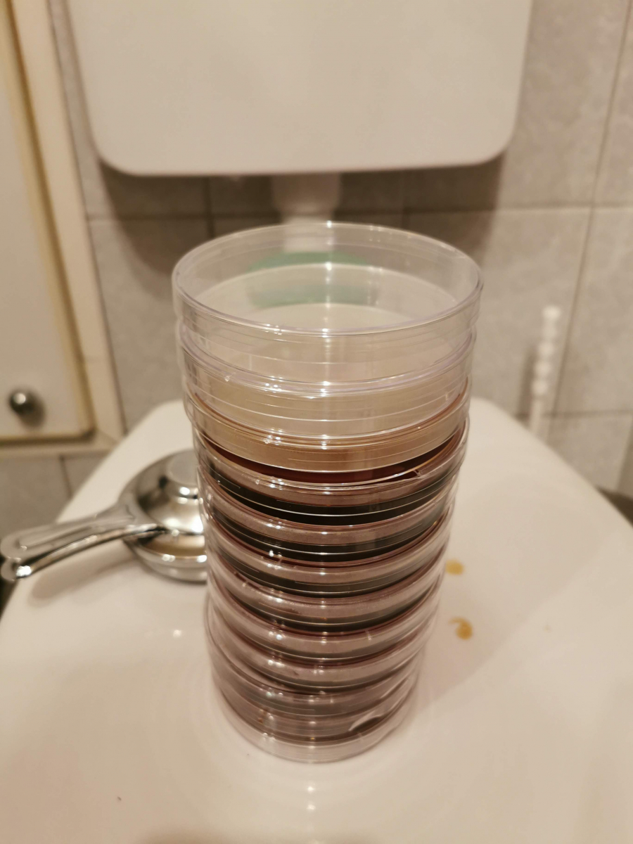 1. Austernpilze auf Kaffesatz: Jetzt schon von Grünschimmel befallen, kann ich also sicher schon wegwerfen. Anleitung wurde 1:1 befolgt, habe sauber, wenn auch nicht steril gearbeitet. Abtragen hat nichts gebracht, da er so ziemlich alles an Kaffesatz durchzieht, was die mitgelieferte Brut nicht direkt berührt. Sollte ich es nochmal mit Kaffesatz versuchen, werde ich es anders machen: Den gesammelten Kaffesatz nochmal sterilisieren. Nicht Kaffesatz und Brut 80/20 mischen, sondern umgekert: Einen großen Klotz Brut mit einem Esslöffel Kaffesatz füttern, damit der Pilz die Chance hat, den Kaffee vor dem Schimmel zu erobern. Dann erst wieder füttern, wenn alles vollständig durchwachsen ist.