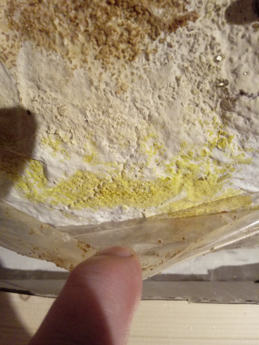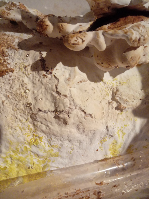 Habe mir mal einen Substratblock vom Reishi gegönnt und soweit ging alles gut...Ich war anfangs etwas verunsichert,ob diese zottigen Vortsätze oben normal sind,aber das ist wohl so....Er hat auch schön dichtes Myzel nachgebildet,doch jetzt bekommt er gelbe Flecken! Weiss jemand ob das so original ist,oder ob da ein fieser Schimmel wächst? Er gedeiht eigentlich ganz gut und bekommt auch schon erste "Fruchtbeulen" ....Danke!!!!