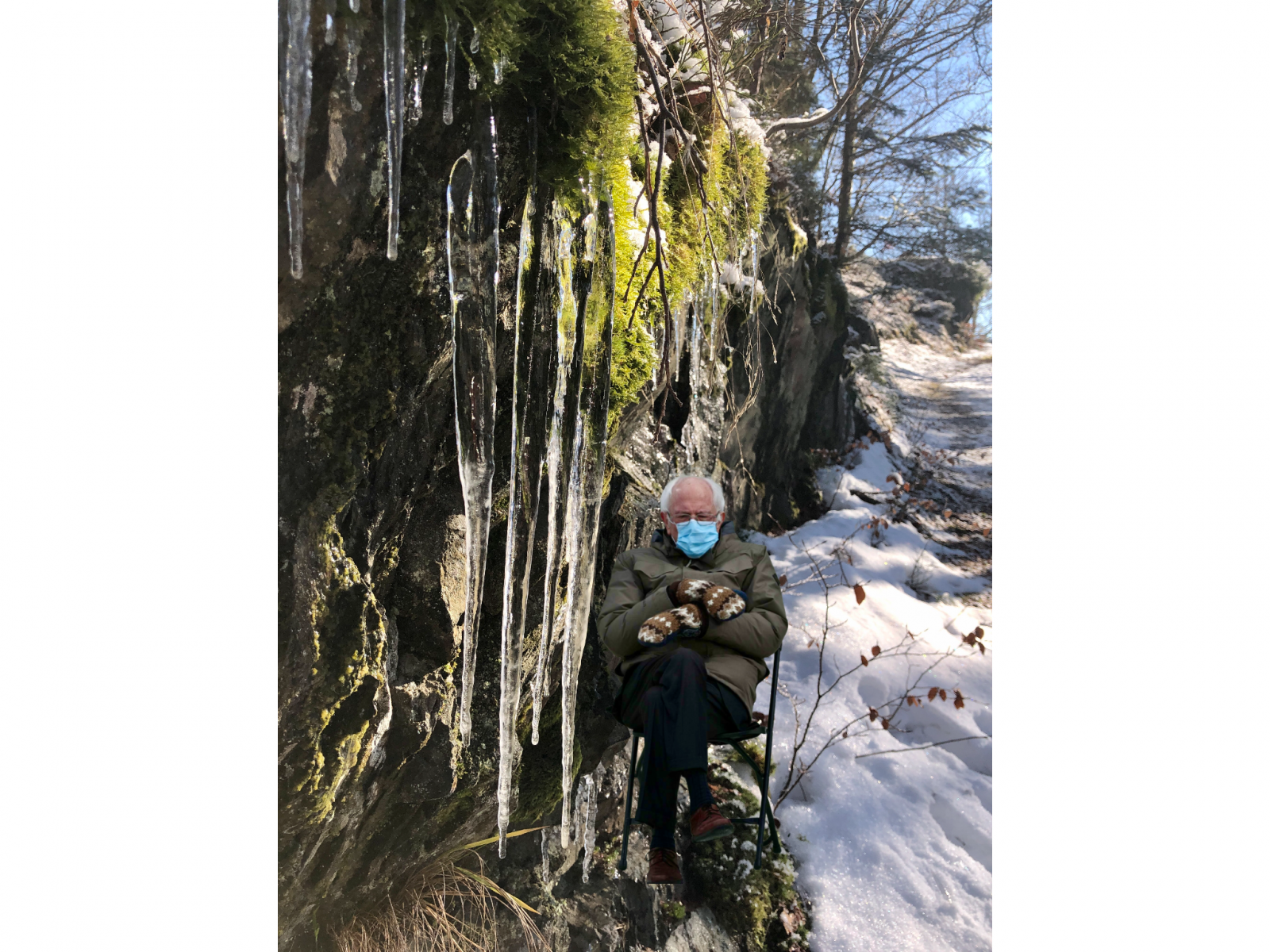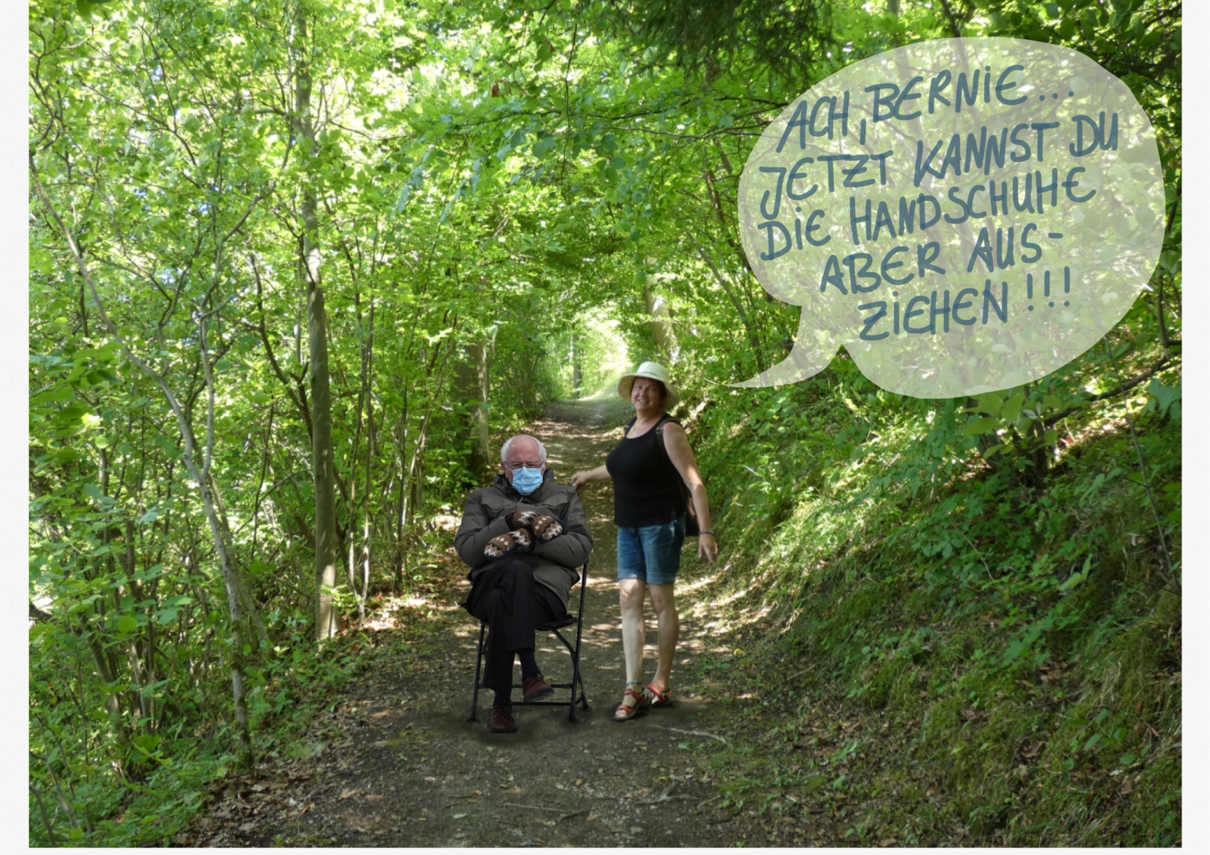 Es ist lustig, wo Bernie Sanders, in seiner viral gegangenen Erscheinung bei der Vereidigung den neuen US Präsidenten, alles platziert wird. In Filmausschnitten, beim Pow wow der Native Americans, am heimischen Küchentisch und so weiter.