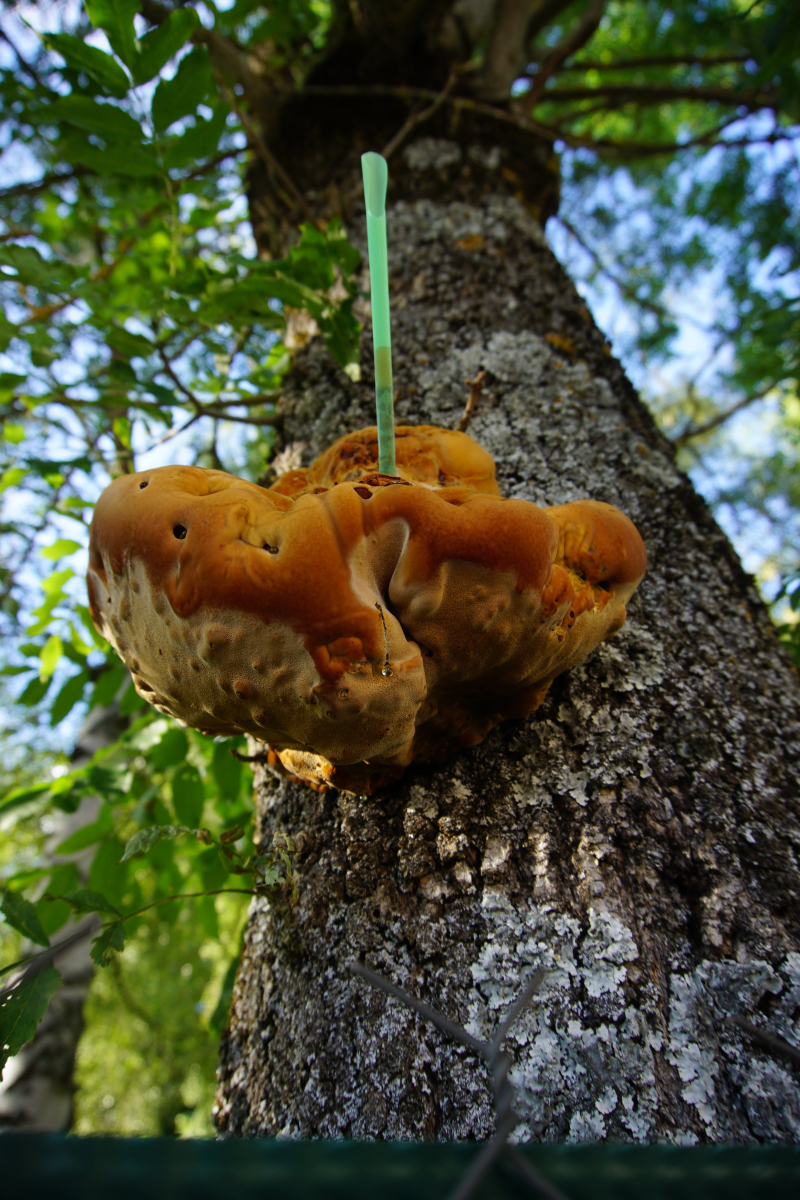 Warum steckt das grüne Röhrchen oben in dem Schillerporling?