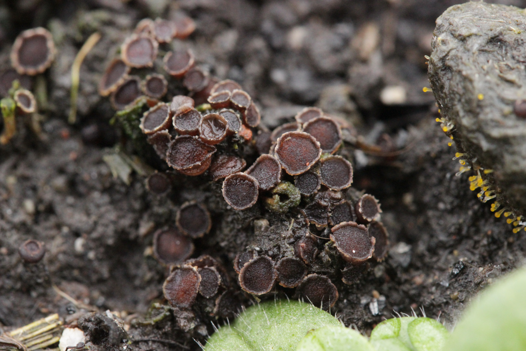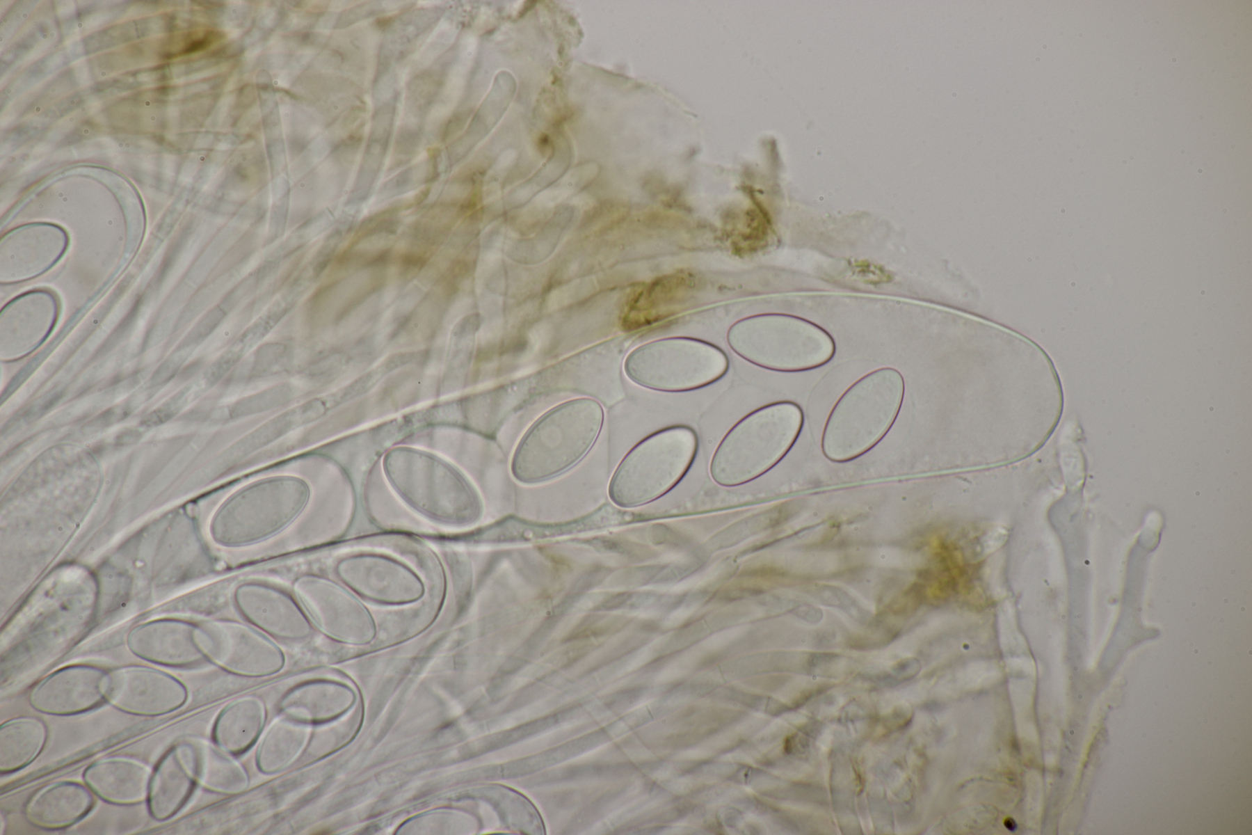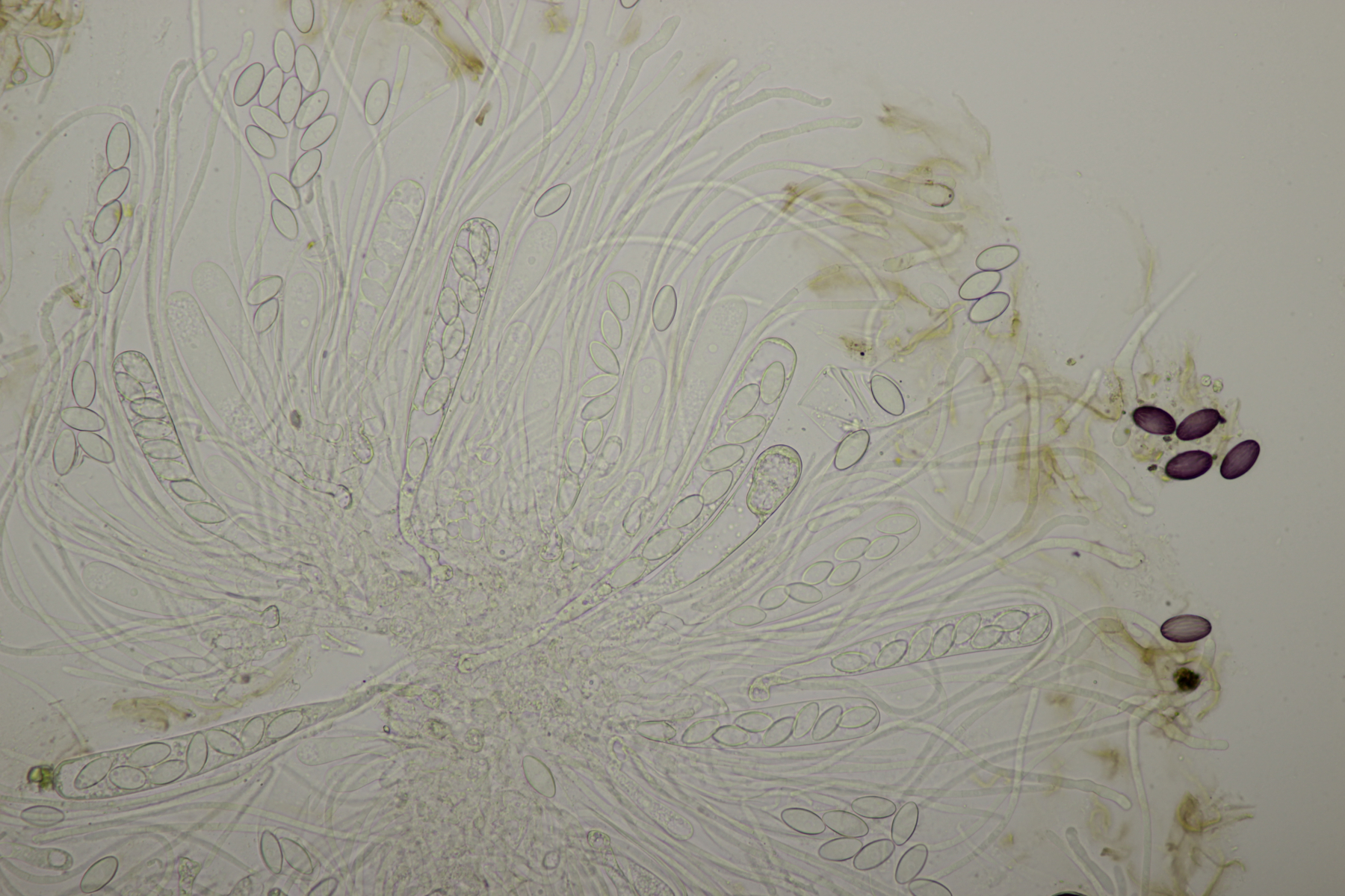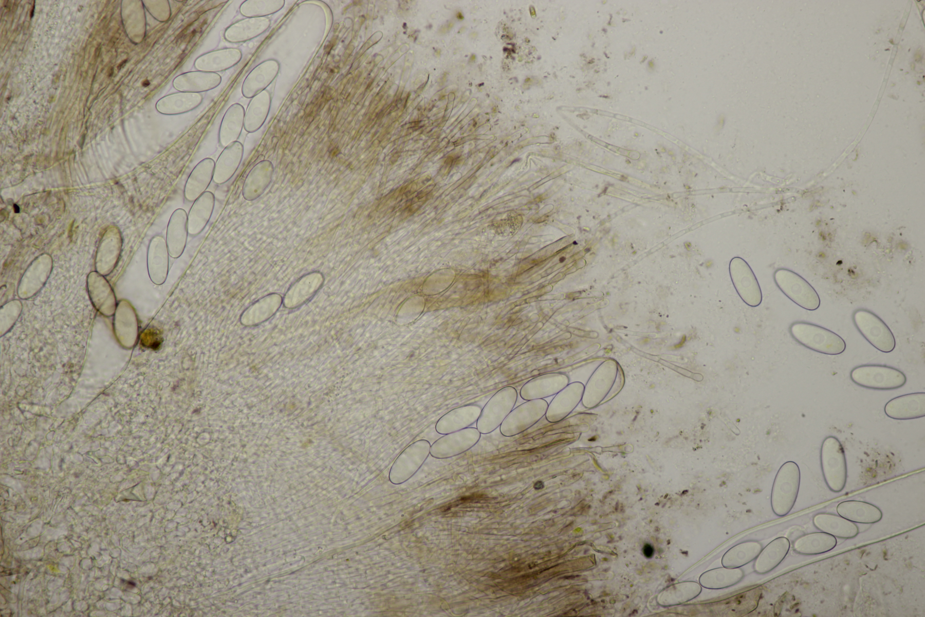 Recht dunkle Ascobolusse auf Kaninchendung. Sporen messen (18.1-22.5) µm x (10.5-12.4) µm und haben parallele Riefen. Dann setze ich bei van Brummelen mit der Sect. Ascobolus an und schlüssele über 1* -> 4 -> 5* -> 8* -> 11* -> 12* zu Ascobolus albidus. Geht ihr da mit?