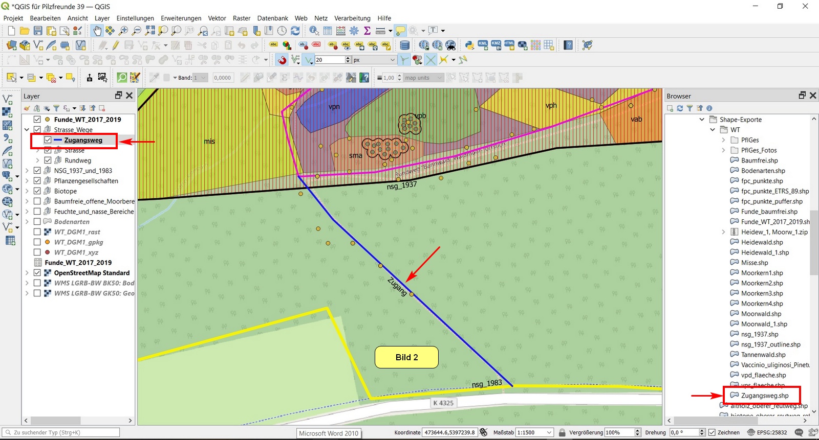 In Bild 2 ist er bereits als Shapefile-Layer Zugangsweg erstellt: