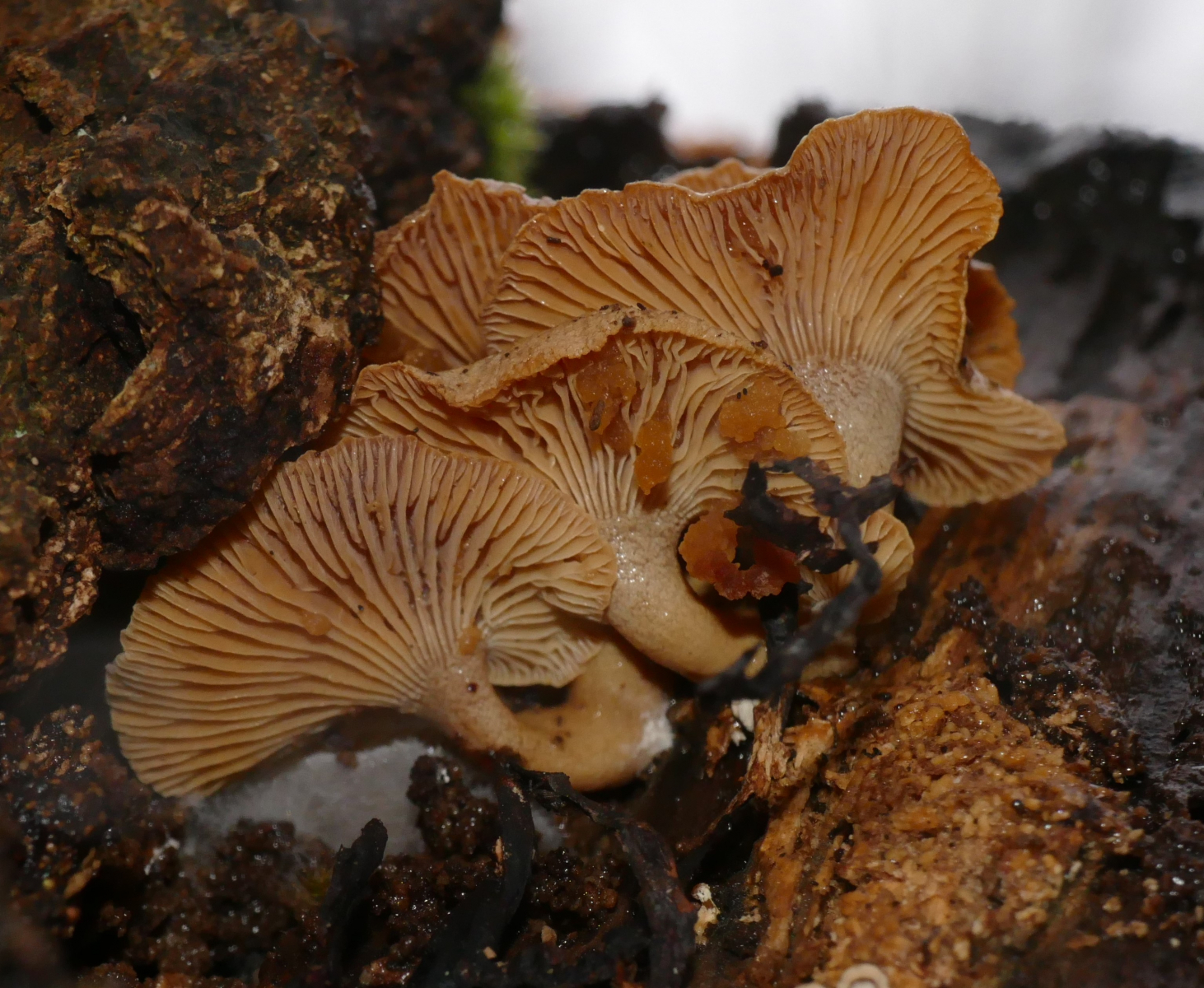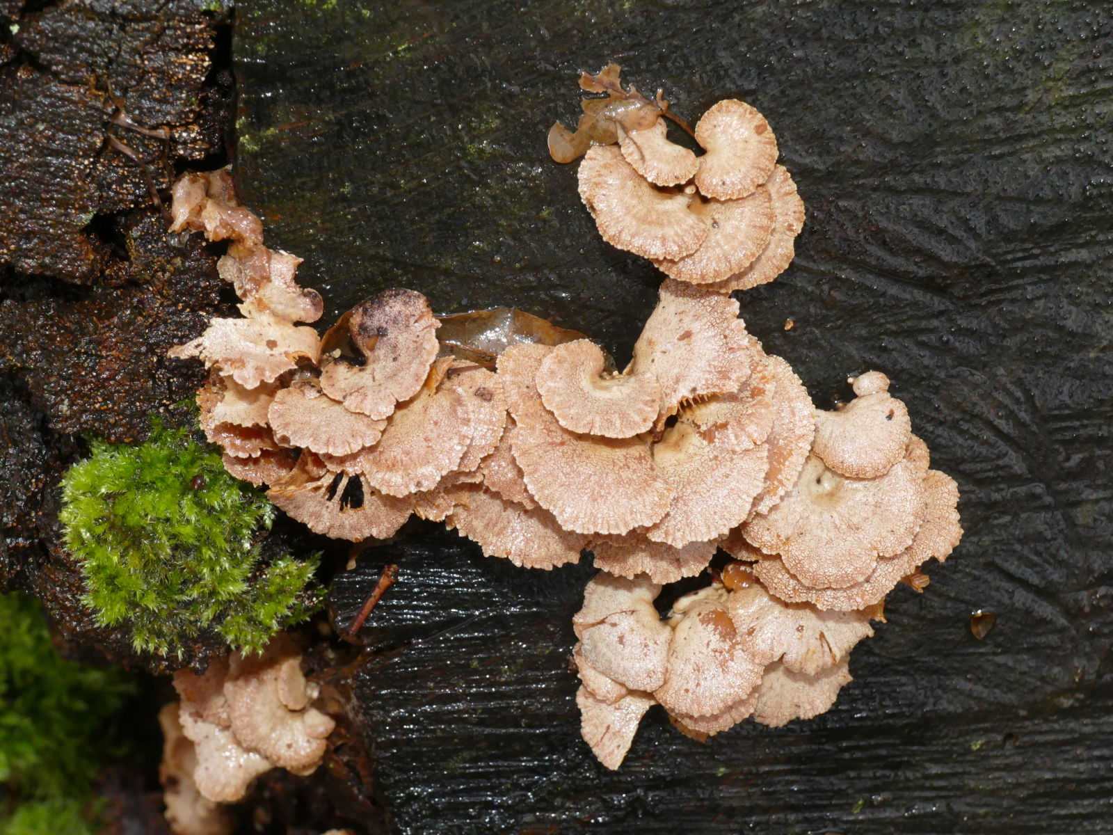 diese kleinen Pilze habe ich heute Nachmittag im heimischen Laubmischwald auf der Schnittfläche einer abgeholzten Birke entdeckt. Ich kann mir aktuell keinen Reim darauf machen. Kann jemand helfen?