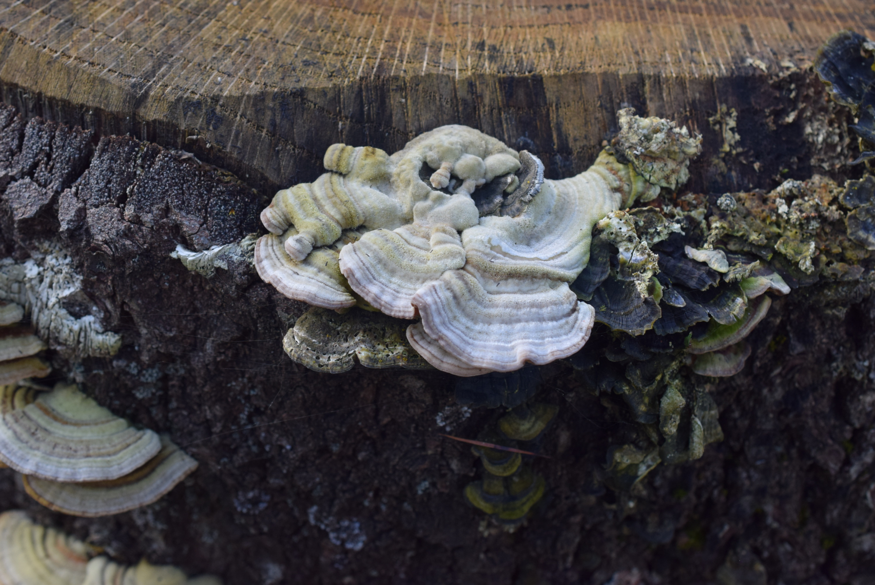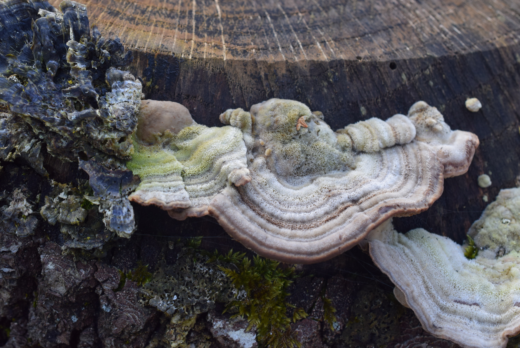 Auf dieser Eichenstumpf fand ich mehrere verschiedene Arten nebeneinander