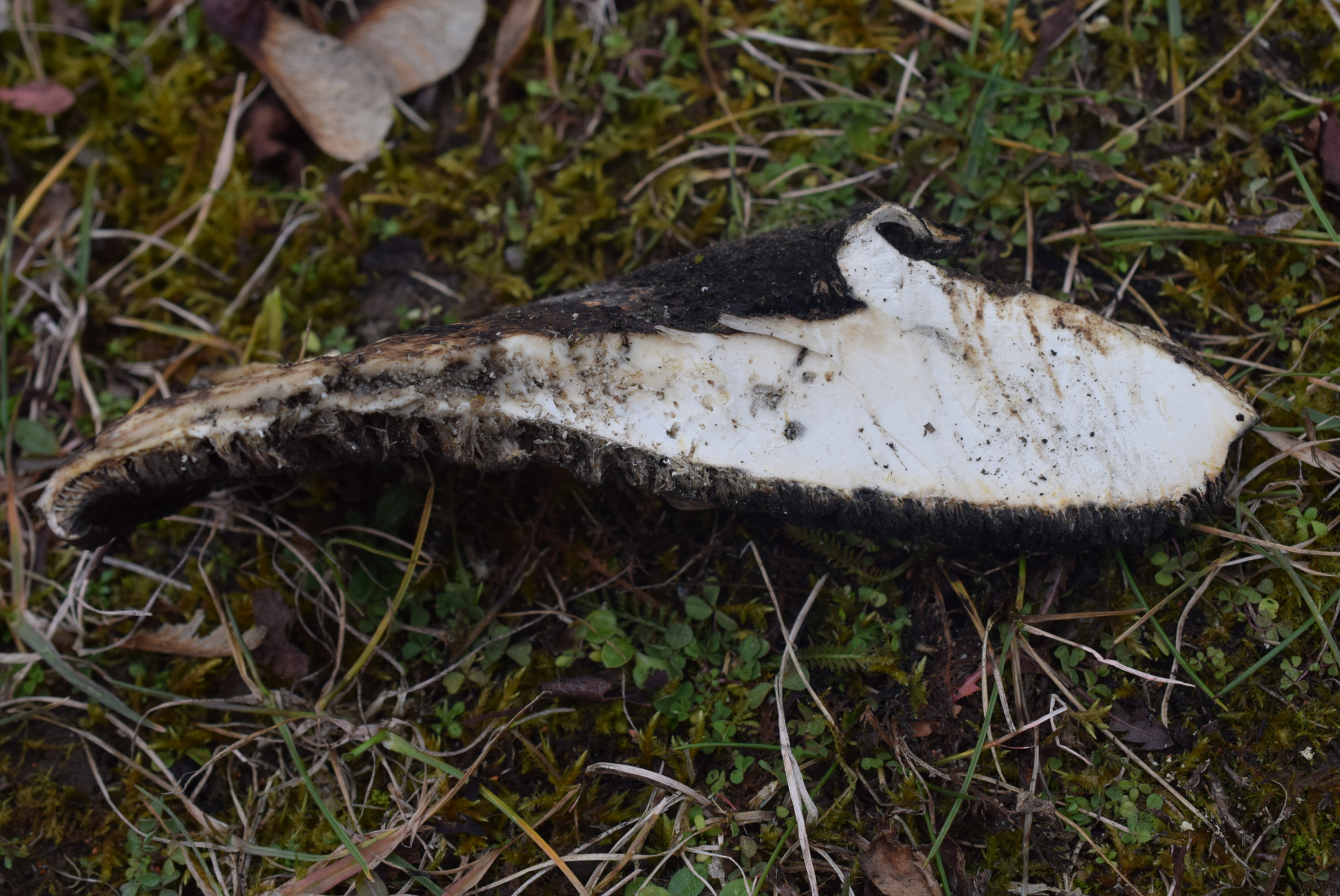 Baeospora myriadophylla an Bekannte stelle ( hab zuerst gedacht das diese Exemplar gedacht etwas anderes ist aber glaube stark das ich habe richtig bestimmen , Winterung und Frost haben spuren an Pilz gelassen )