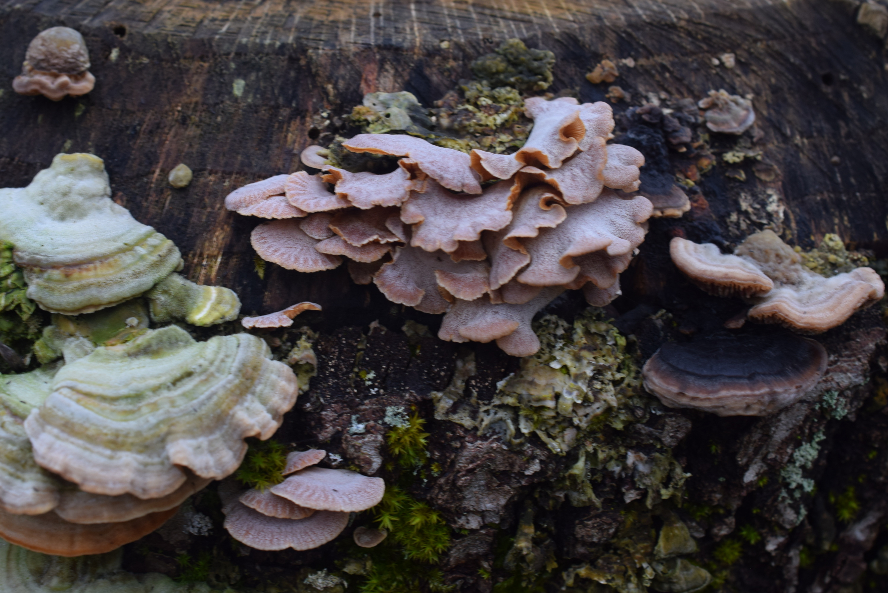 Auf dieser Eichenstumpf fand ich mehrere verschiedene Arten nebeneinander