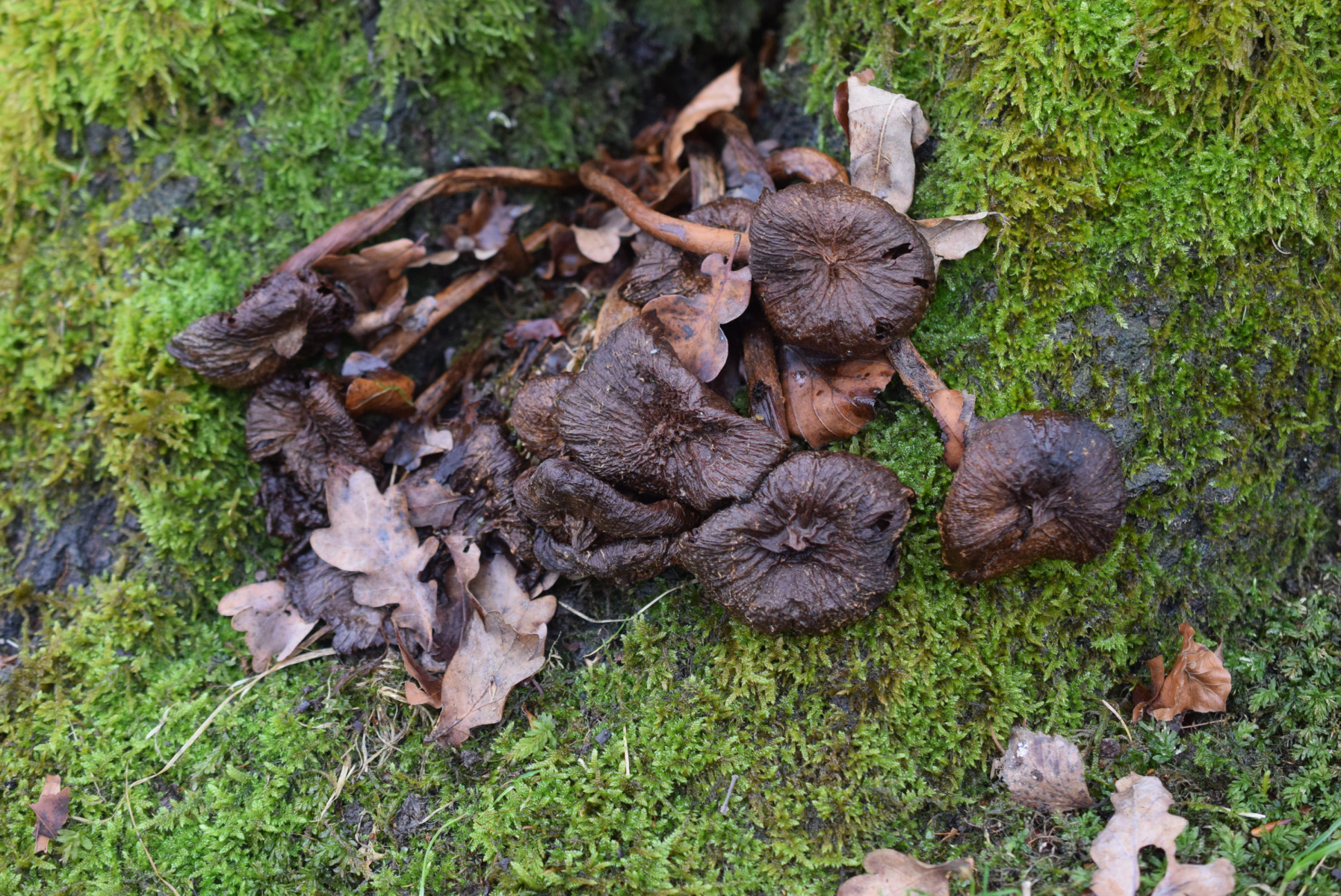 Baeospora myriadophylla an Bekannte stelle ( hab zuerst gedacht das diese Exemplar gedacht etwas anderes ist aber glaube stark das ich habe richtig bestimmen , Winterung und Frost haben spuren an Pilz gelassen )