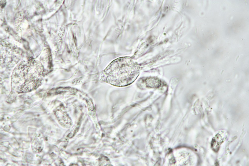 Deshalb werde ich diesen Pilz vorerst nur als Myxarium hyalinum bezeichnen und teile nicht die Ansicht, dass M. nucleata und M. hyalinum ein und dieselbe Art ist.