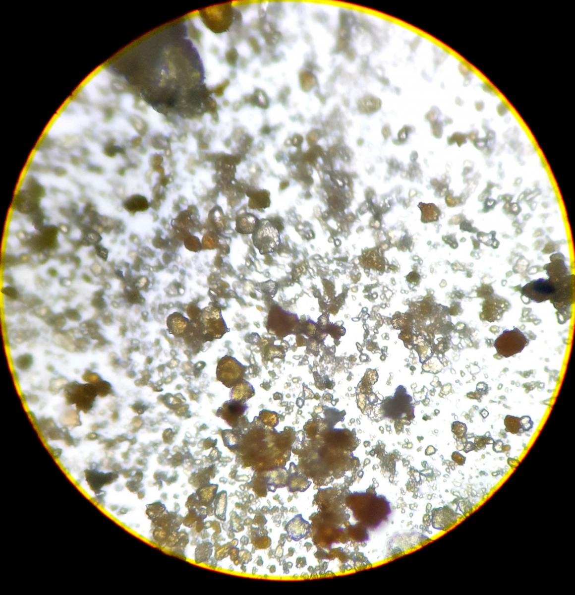 Hier hab ich mal ein bischen Schnee auf der Heizung verdampfen lassen -> so sieht der Saharasand unterm Mikro aus: