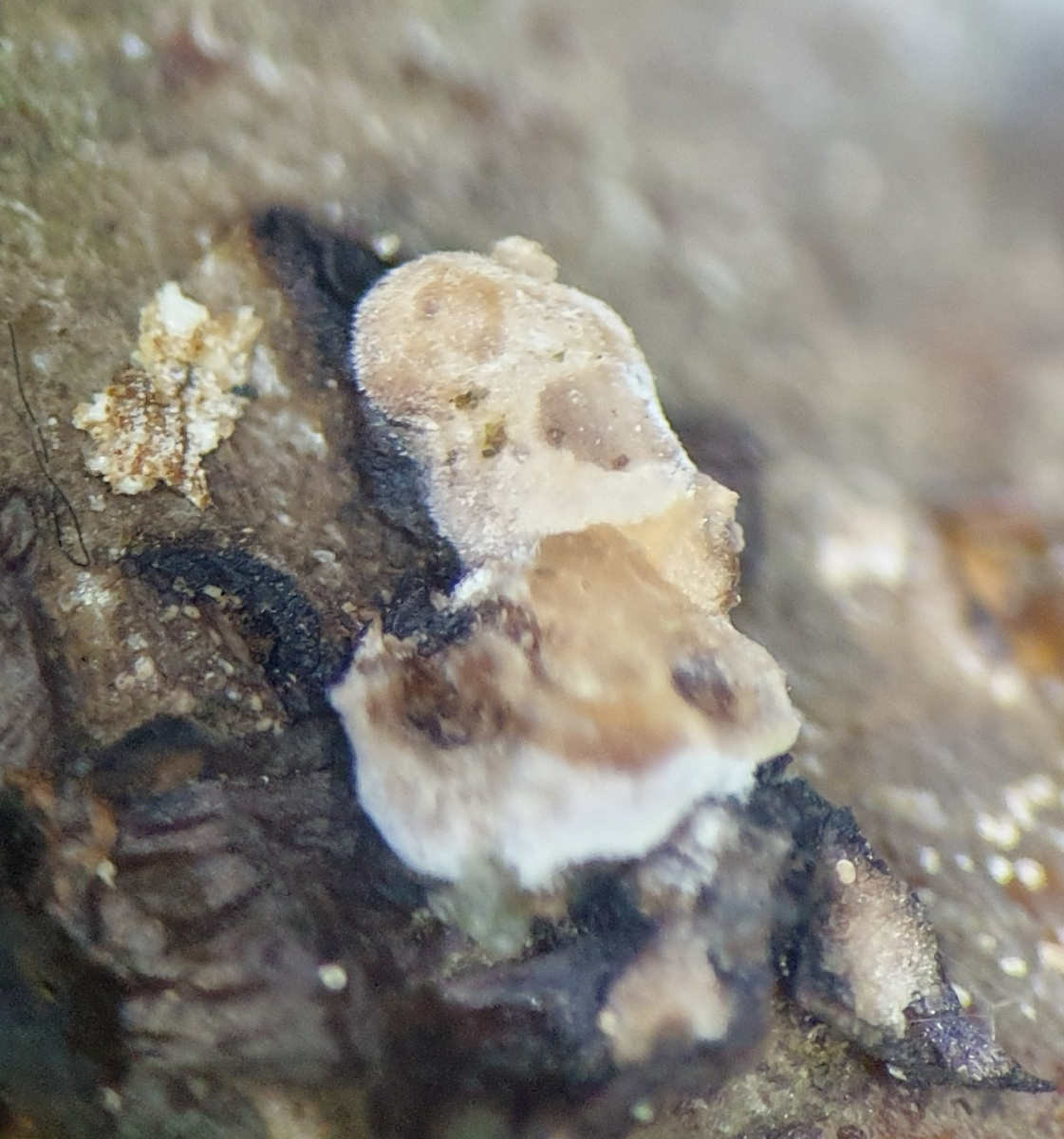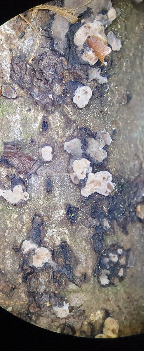diese Kohlenbeeren, die es sich auf einem Buchenast gemütlich gemacht haben, werden von einem anderen Pilz aufgefressen.
