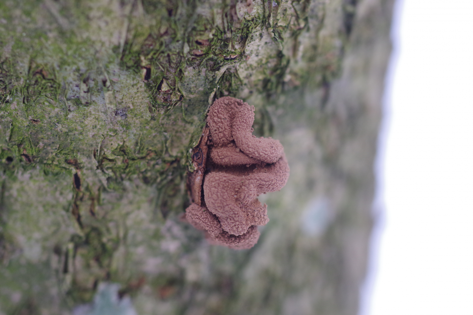 3) und ein merkwürdiges Etwas an einem sehr kräftigen (mind. 20 cm Durchmesser) Haselnussstamm, vielleicht ein Schleimpilz