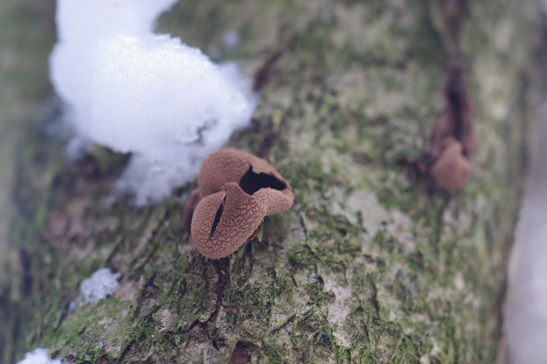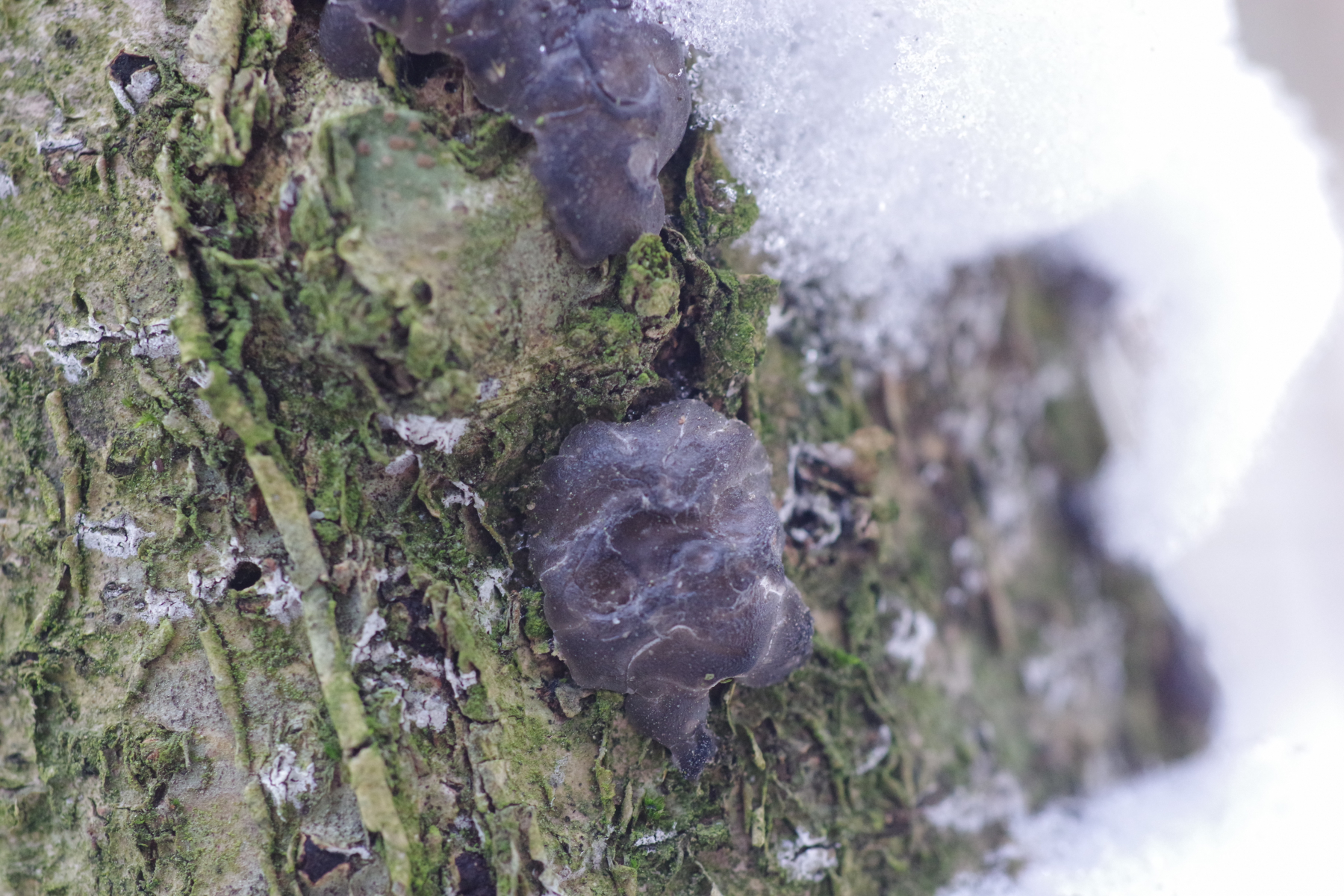 Bei den schwärzlichen Flecken kann man sich schon gut eine eingetrocknete und dann gefrostete Exidia vorstellen.