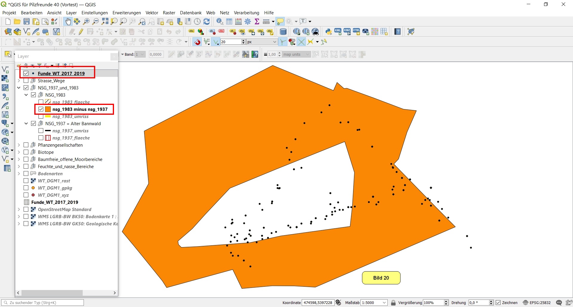 - Pilzfunde auf der Differenzfläche generieren (Werkzeug Verschneidung)
