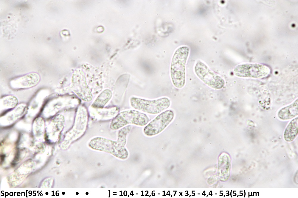 ich wüsste nicht, was hier gegen Exidia nigricans sprechen würde. Die Sporenlängen variieren recht stark, da es immer wieder Ausreißer nach oben gibt. Es hängt wohl auch vom Reifegrad ab. Deine Maße passen gut auf Exidia nigricans und makroskopisch wüsste ich da eh nichts anderes.
