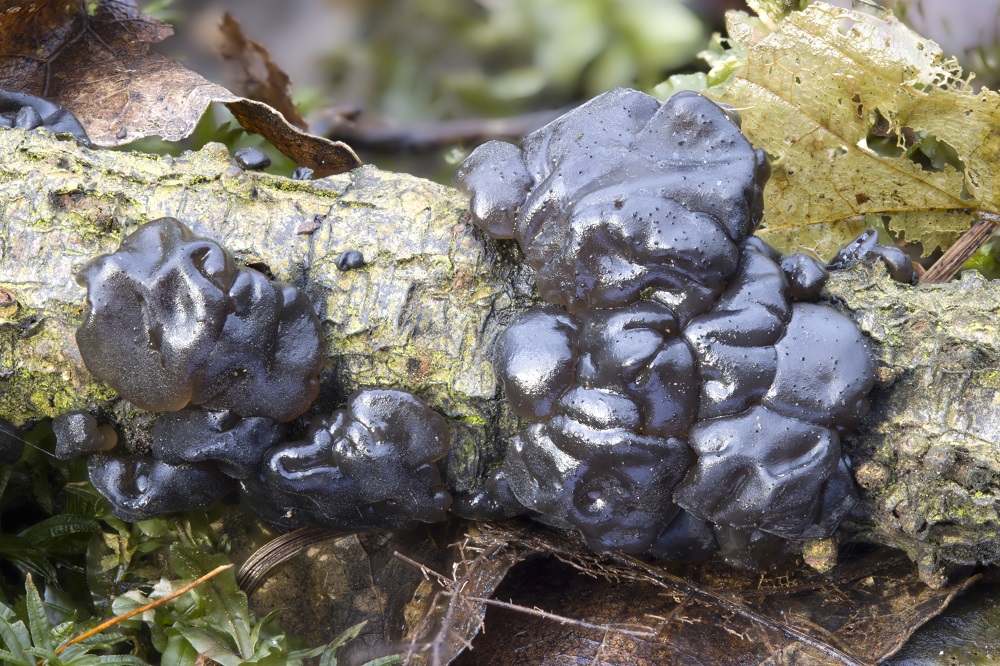 Exidia nigricans. auf Alnus