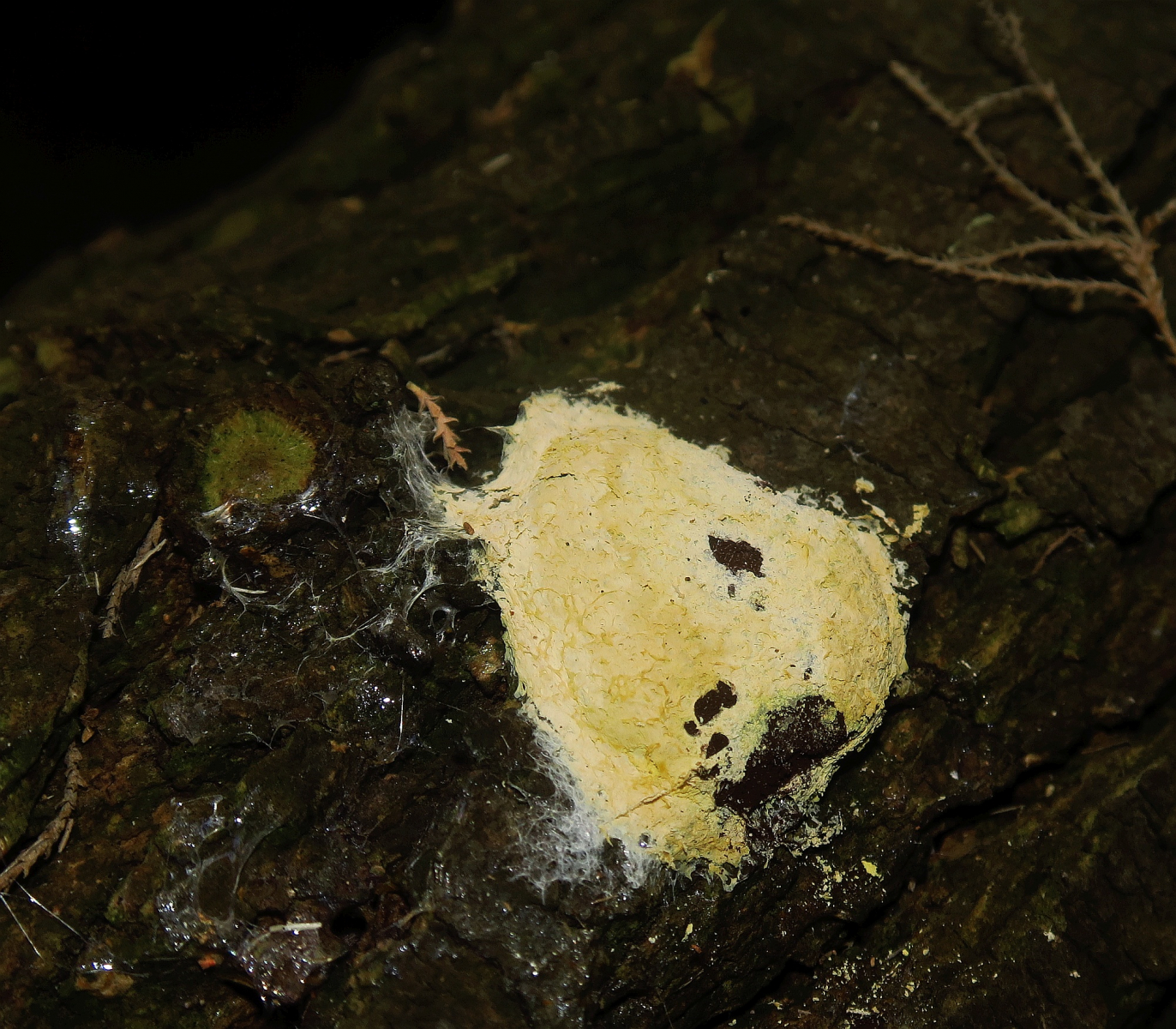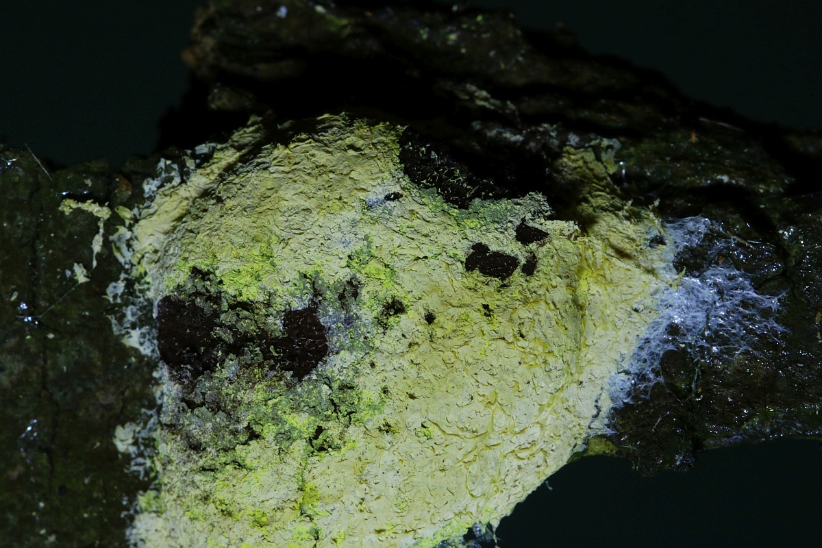 I have found this slime mold high on a trunk of a Tamarix africana about 1m above ground level (strange place for slime moudds) and I am quite sure it is Fuligo septica sl but then I am not sure about the variety. It has a pale yellow / cream outer lime surface followed by a bright lemon-yellow one below. The capillary looks white. I am undecided between var. Septica or var. Flava?y a