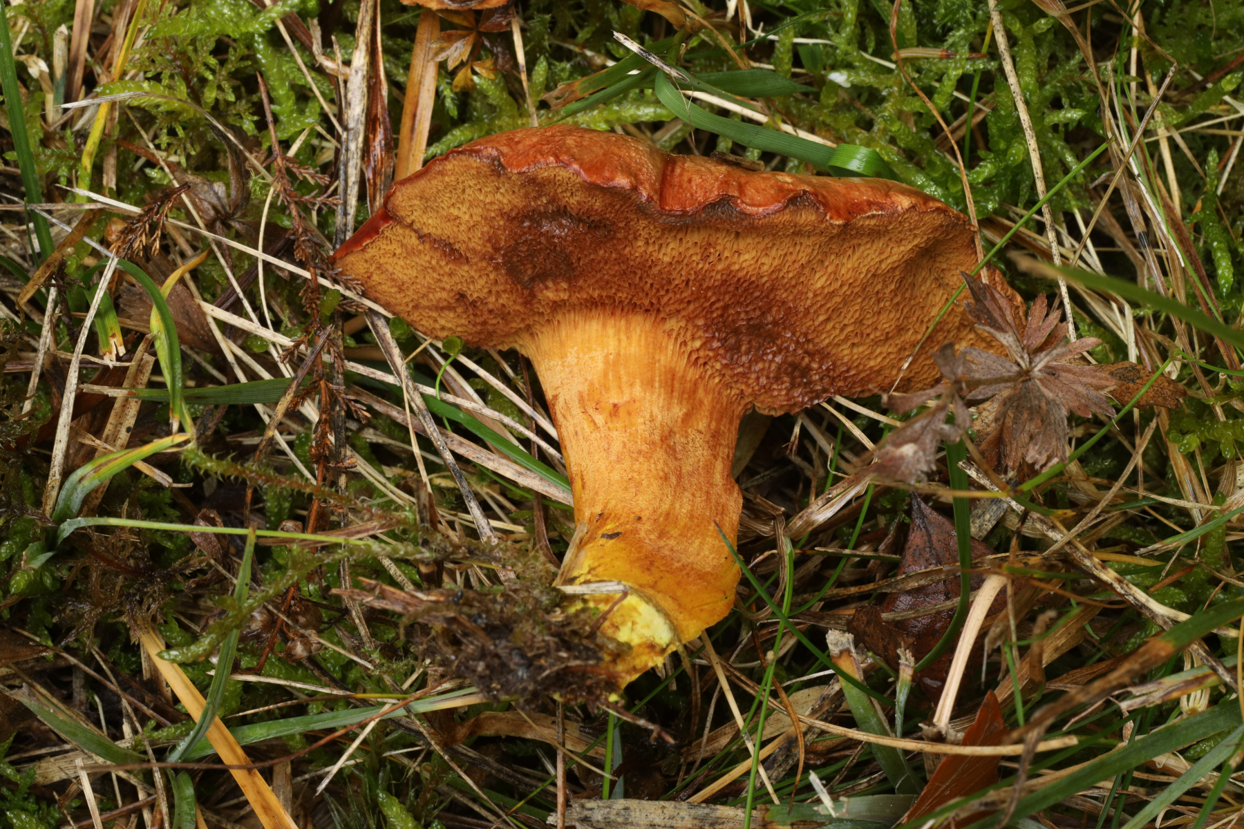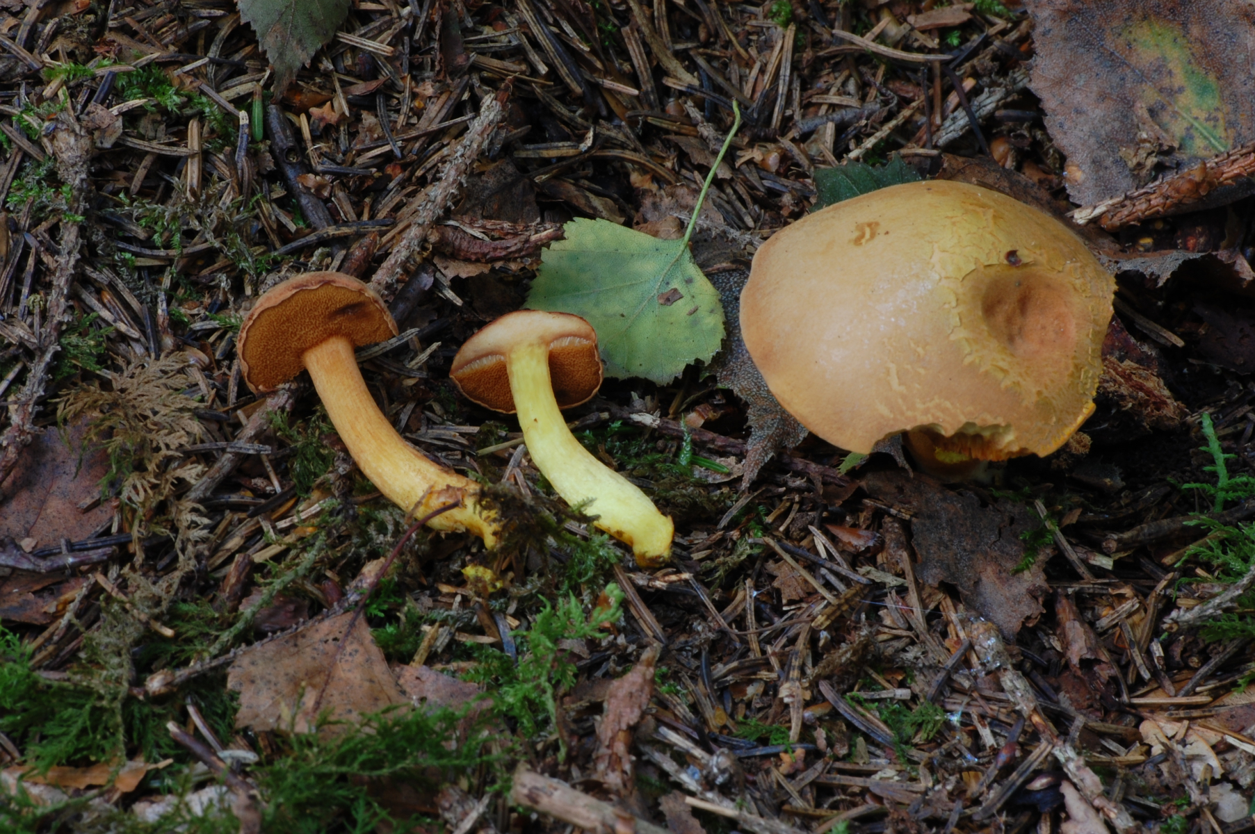 Der Hintergrund: es gibt Kollektionen mit jung auffallend gelben Röhren/Poren, die auf Druck blauen, später dann aber rostfarbene Röhren bekommen. Die Abgrenzung zu Chalciporus hypochryseus ist da natürlich das erste, was einem in den Kopf käme, was zu prüfen sei. Der fleckt aber (wenn ich es gerade richtig im Hirn habe) nicht auf Druck.