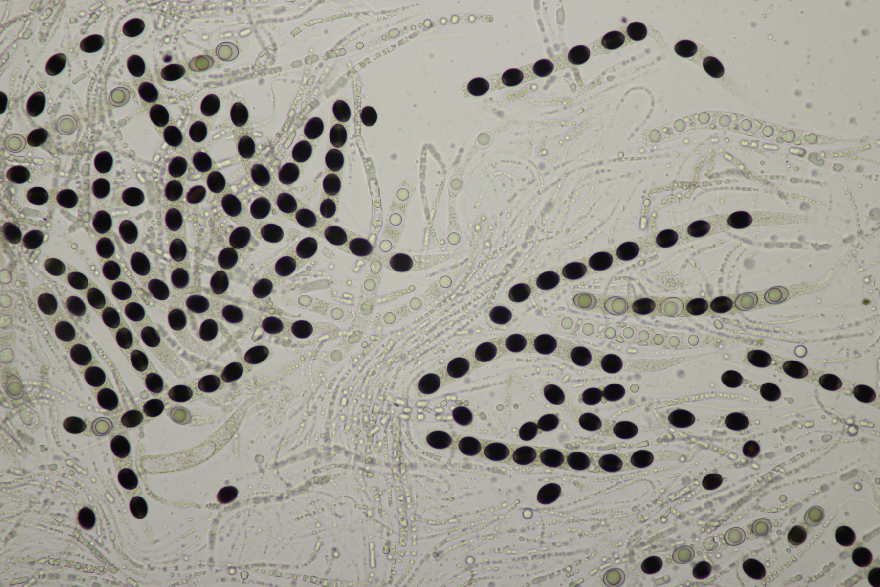Das war auch mein erster Gedanke, aber mir scheinen die Konidien recht klein zu sein, was eher für Dinemasporium strigosum sprechen würde.