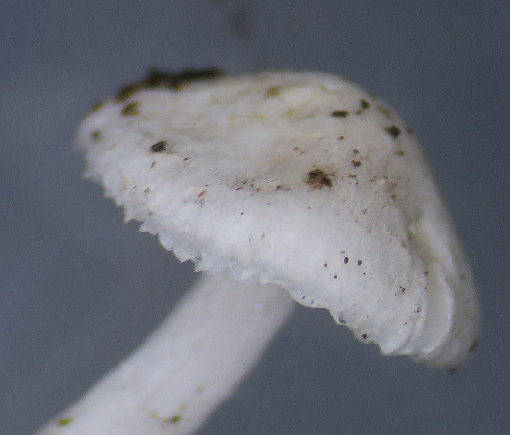Hello, I am back on track to identify this small mushroom. Gills are free (or slightly adnexed). Stipe bruises a little (?); cap floccose and appendiculate