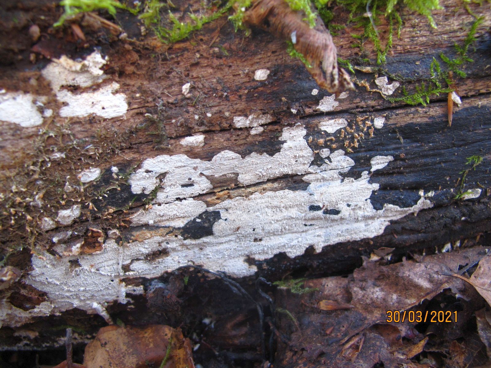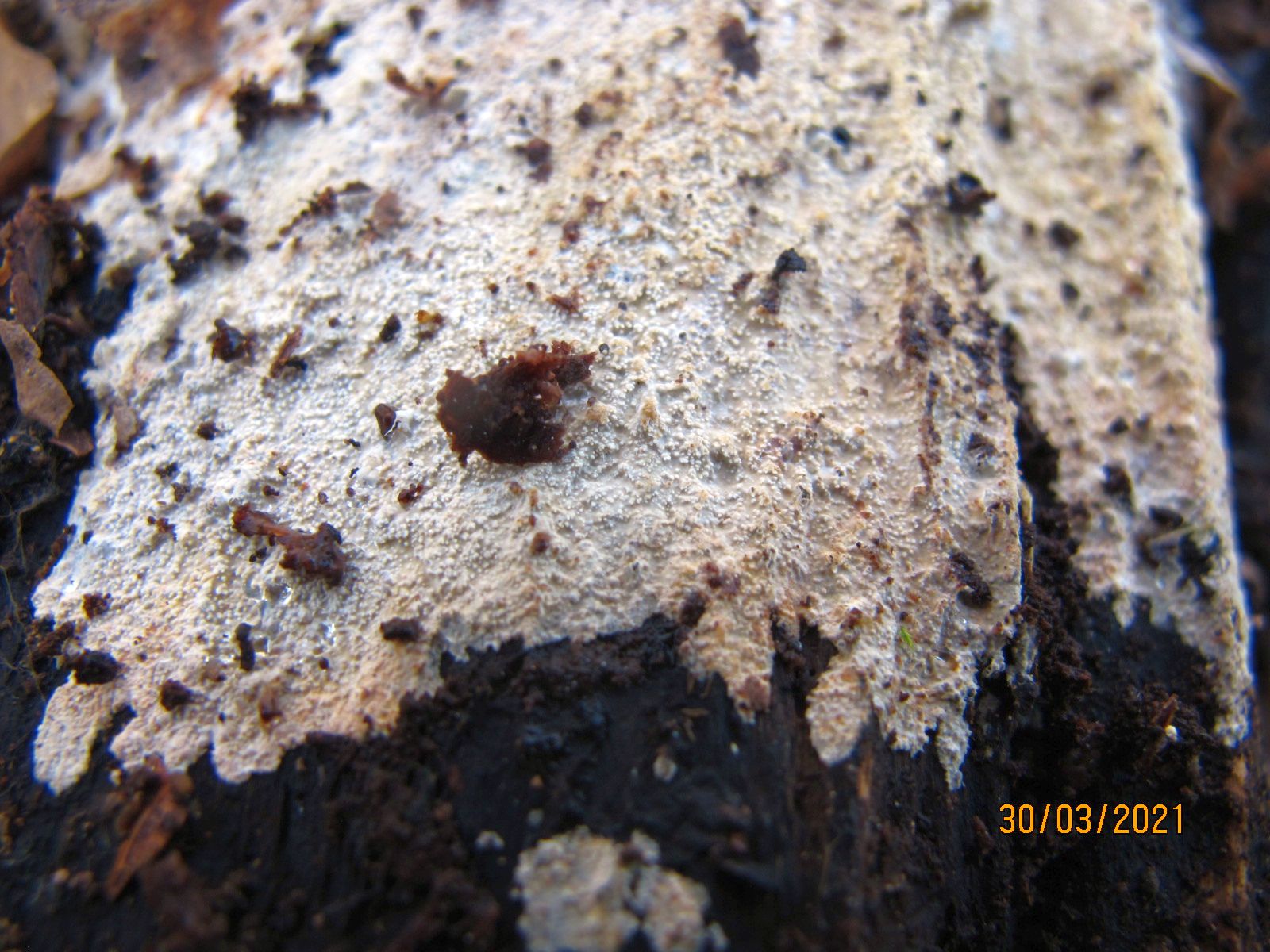 Übrigens gibt es 4 alte liegende Buchenstämme im Umkreis von 20m mit diesem Crustomyces.